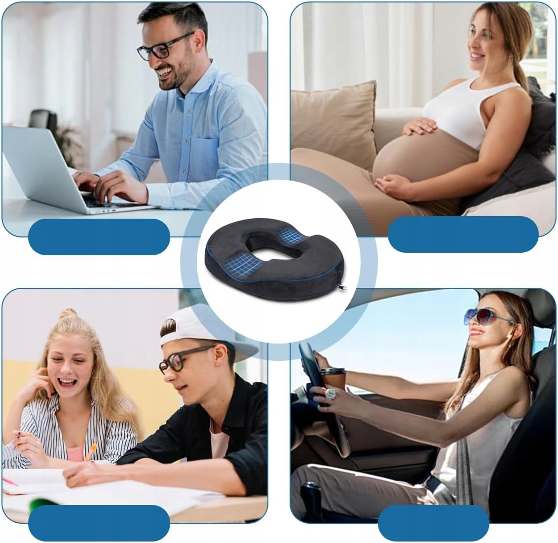 U-подібні рифлені виступи адаптуються до вигинів тіла, забезпечуючи зручний розподіл тиску під час сидіння, що робить подушку ідеальною для тривалого сидіння.