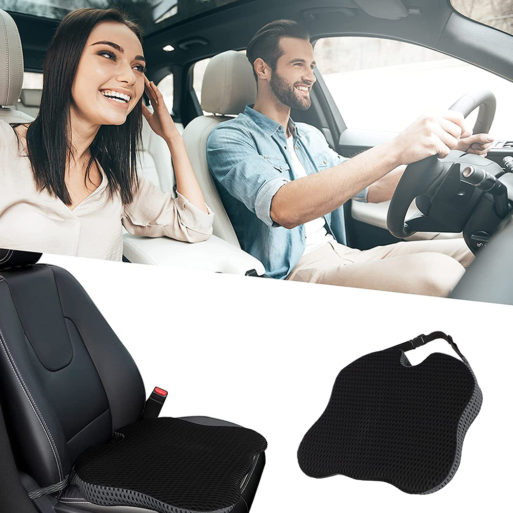 клиновидна нижня спереду, висока задня (висота 2~8 см), більше підходить для автомобільних сидінь, покращує видимість за кермом, робить водіння комфортнішим і легшим. Крім того, спинка подушки оснащена регульованим кріпильним ременем, який фіксує її до сидіння, запобігаючи її зсуву.
