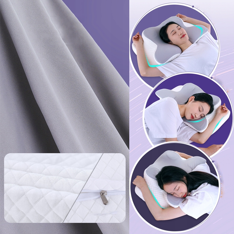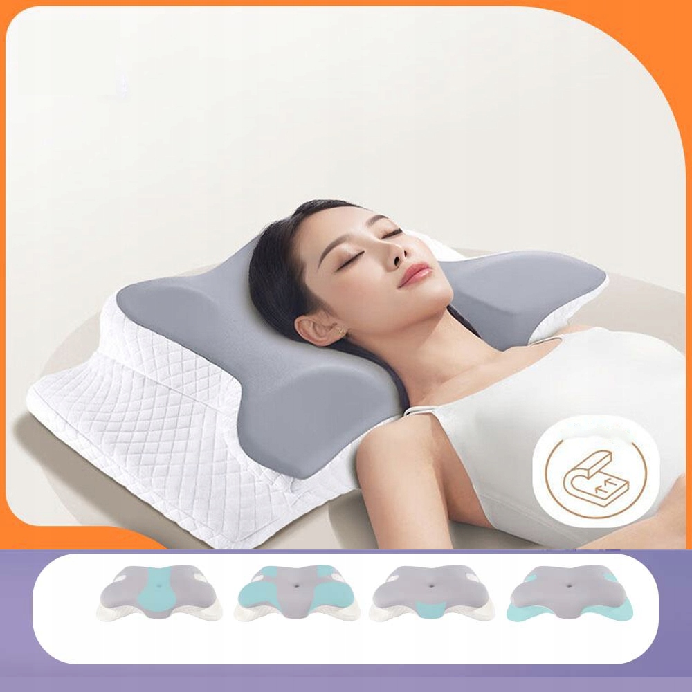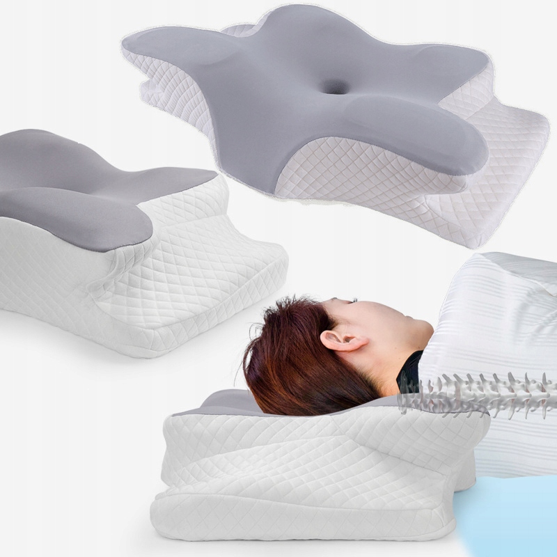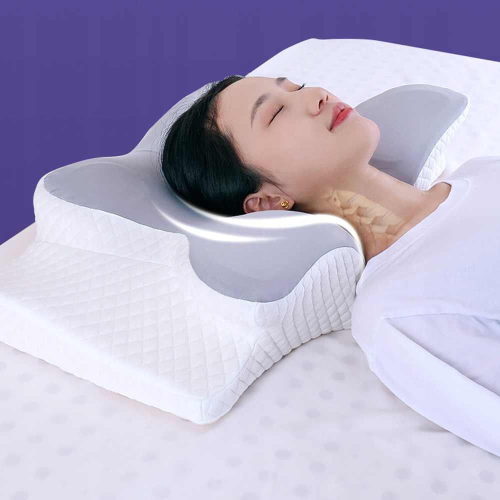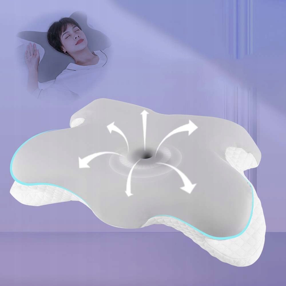 Ця ортопедична подушка має форму метелика, контур шиї та ергономічний дизайн шийної порожнини, завдяки чому вона адаптується до природних вигинів тіла, забезпечуючи оптимальний потік повітря та зменшуючи хропіння, що забезпечує більш спокійний сон.