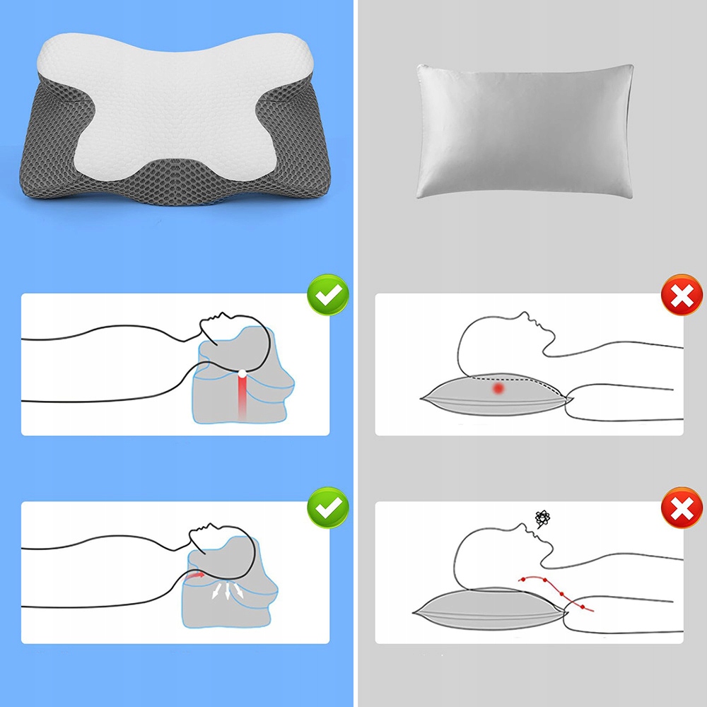 🌙 ЕРГОНОМІЧНА ПОДУШКА ДЛЯ ШИЇ преміум-класу: Подушка для шиї має унікальну форму метелика. Кілька зон унікального контуру зберігають шию на потрібній висоті, ефективно знімають дискомфорт навколо плечей і шиї, а також забезпечують хорошу підтримку голови та шийних хребців під час сну. Переконайтеся, що ваша голова знаходиться в зручному положенні для сну. (Спочатку ви можете не звикнути до цього, тому ми рекомендуємо дати собі 1-2 тижні, щоб звикнути)