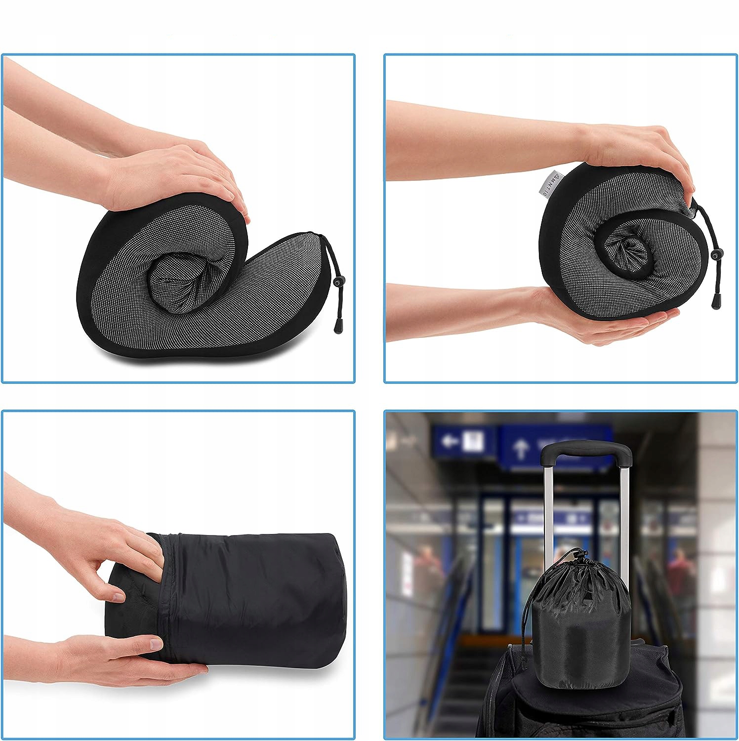 ✔️ - Щоб заощадити місце у вашому багажі, шийну подушку можна просто згорнути та покласти в сумку для зберігання.