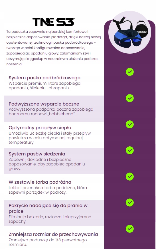Ми представляємо найкраще рішення для незручної подорожі: CABEAU TNE Evolution S3. Ця революційна подушка для подорожей містить нашу останню глобальну інновацію, на яку очікується патент: найзручнішу, найбезпечнішу технологію підборіддя, що запобігає гравітації, яка забезпечує максимальну підтримку голови та шиї під будь-яким кутом. У той же час подушка вміло залишає великий отвір спереду для розсіювання тепла.