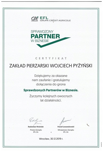 Наша фабрика є однією з небагатьох у Польщі, яка має пір’я та пух, сертифіковані RDS