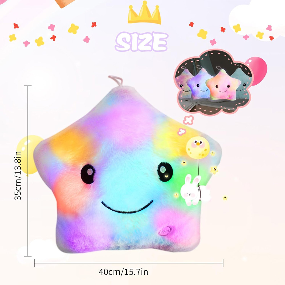 Наша плюшева зірка виготовлена з високоякісного супер м'якого бавовняного PP, який м'який і зручний на дотик і обійми. Це чудовий різдвяний подарунок / Хеллоуїн / Великдень / Новий рік / День подяки / День дітей / день народження для всіх хлопців та дівчат, особливо для людини, яка боїться темряви.