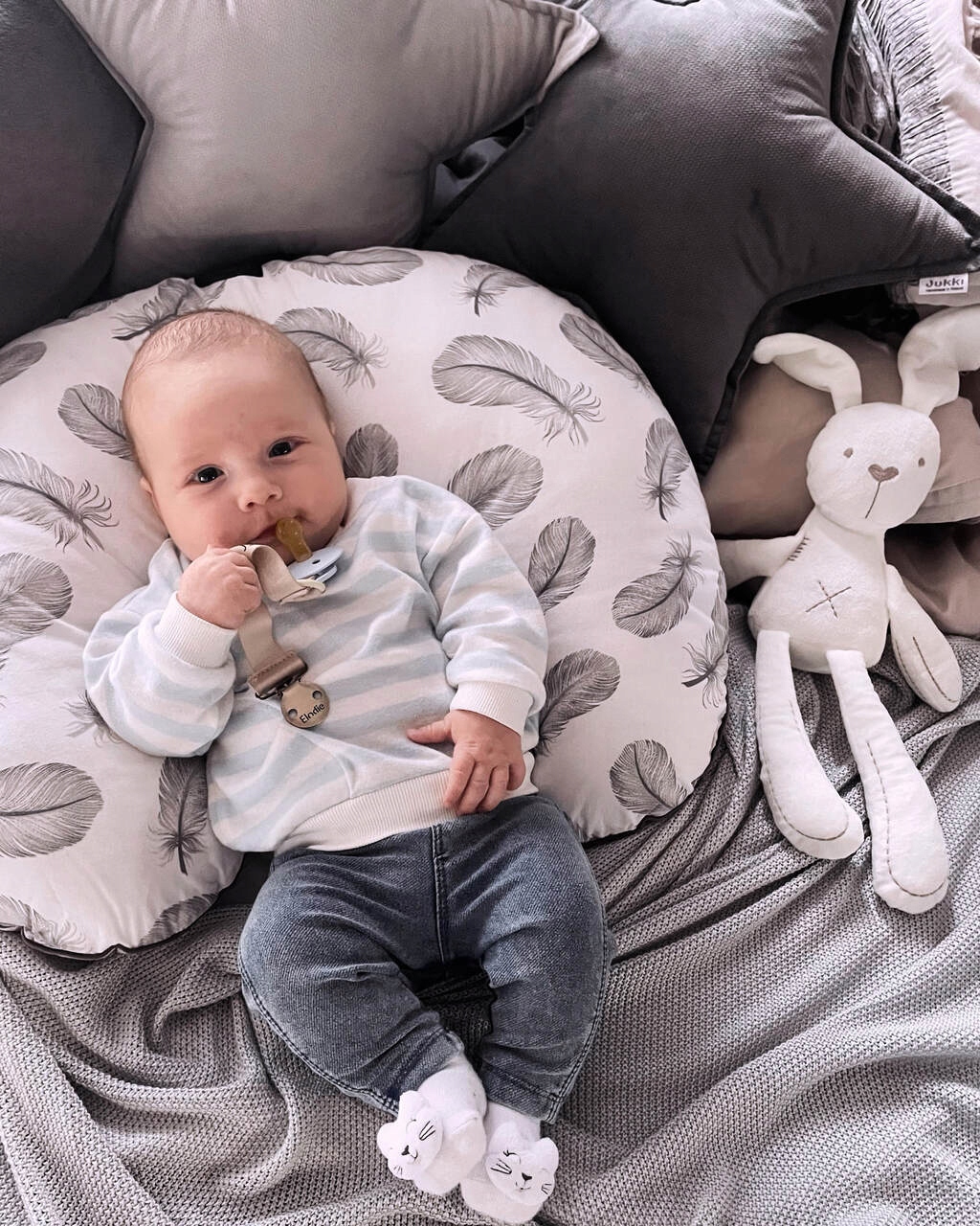 • Зручна: Подушка має ергономічну форму, що забезпечує оптимальну підтримку рук, спини та шиї матері, яка годує грудьми. Це забезпечує природну та зручну позу під час годування, зменшуючи м’язову напругу та втому.