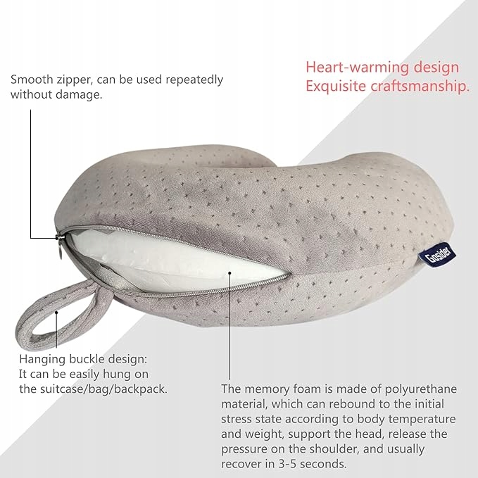 - Високоякісна піна з ефектом пам’яті та оксамитова наволочка] Подушка для подорожей виготовлена з високоякісної піни з пам’яттю форми, яка зручна та дихаюча. Піна з ефектом пам’яті легко стискається та збирається. Наволочка виготовлена з м'якого оксамиту, який не лущиться і не линяє. Забезпечує ніжний догляд за шкірою, підходить для дорослих і дітей. Наволочка знімна і легко чиститься.