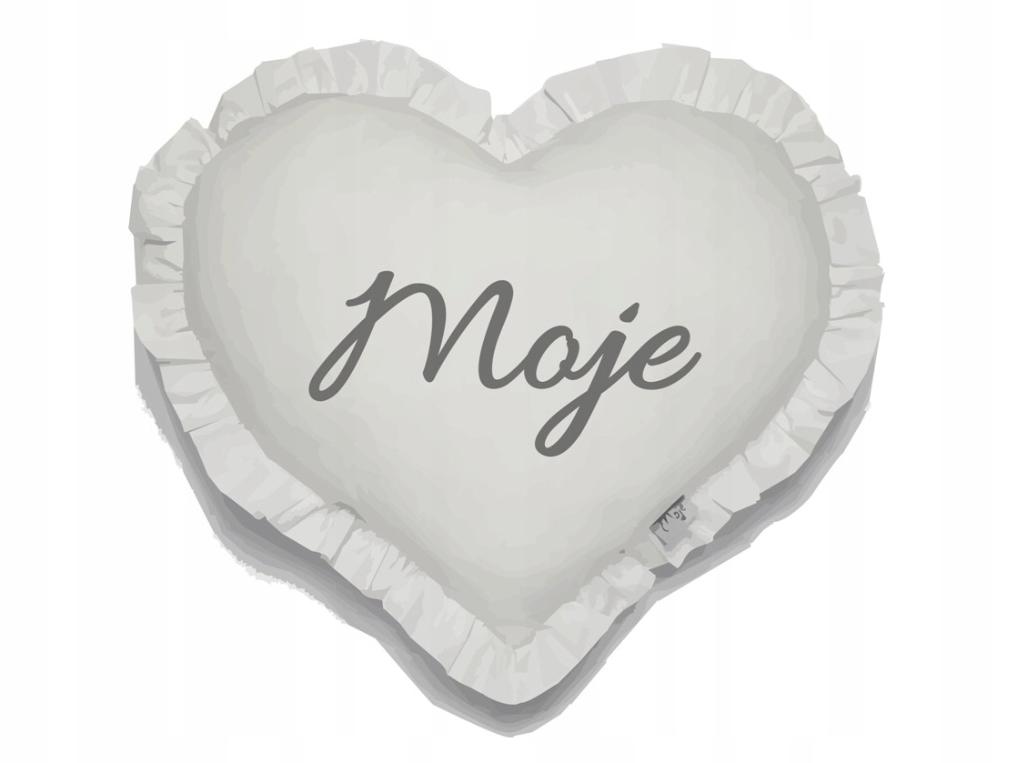 Я представляю свою пропозицію для декоративної подушки у формі сердечок з воланом навколо та назвою, її розміри приблизно 45 см х 40 см.