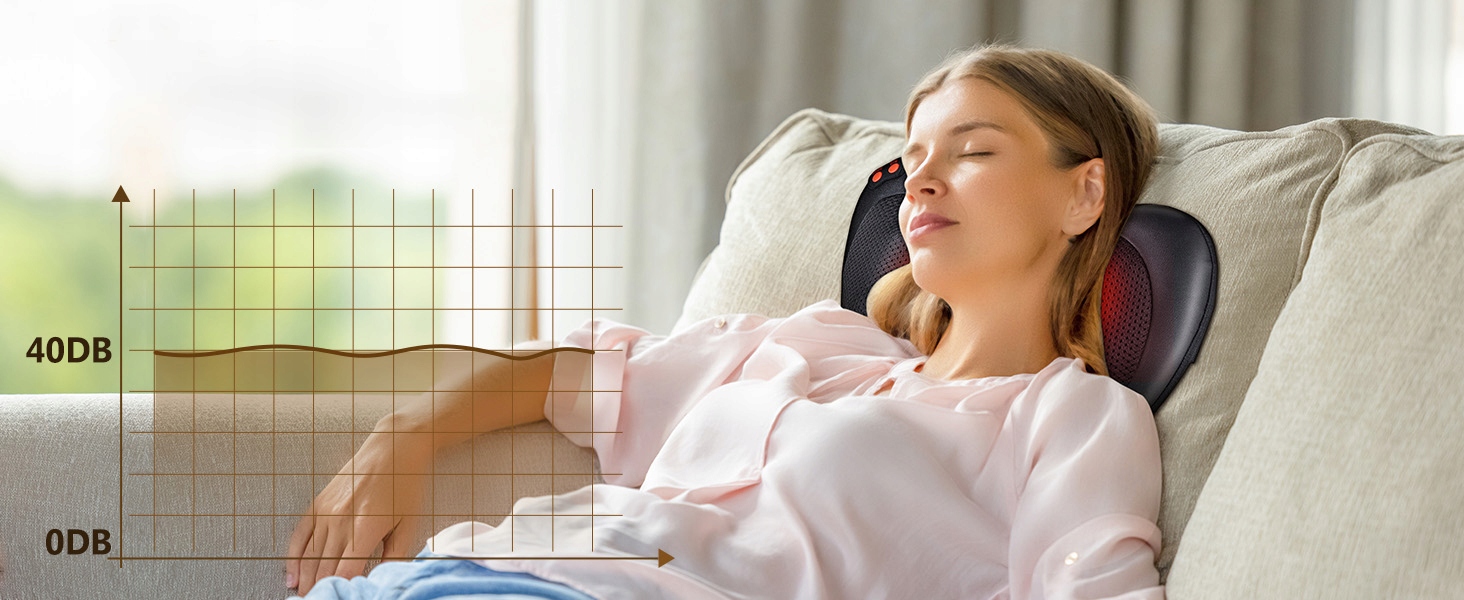 дихаюча сітка зі стільниковою структурою нанокласу забезпечує зручну для шкіри повітропроникність і чудове розсіювання тепла. Водонепроникна поліуретанова шкіра м’яка та довговічна, її легко чистити та доглядати, вона забезпечує чудове відчуття. Внутрішній безшумний двигун забезпечує високу потужність і низький рівень шуму, забезпечуючи комфортний і тихий масаж.