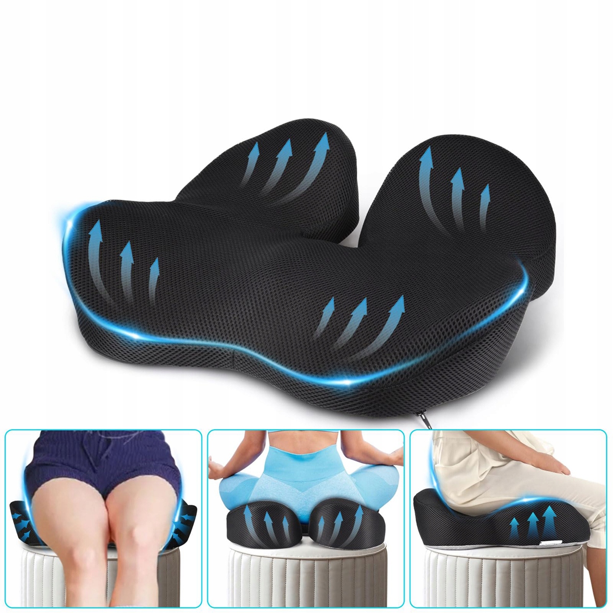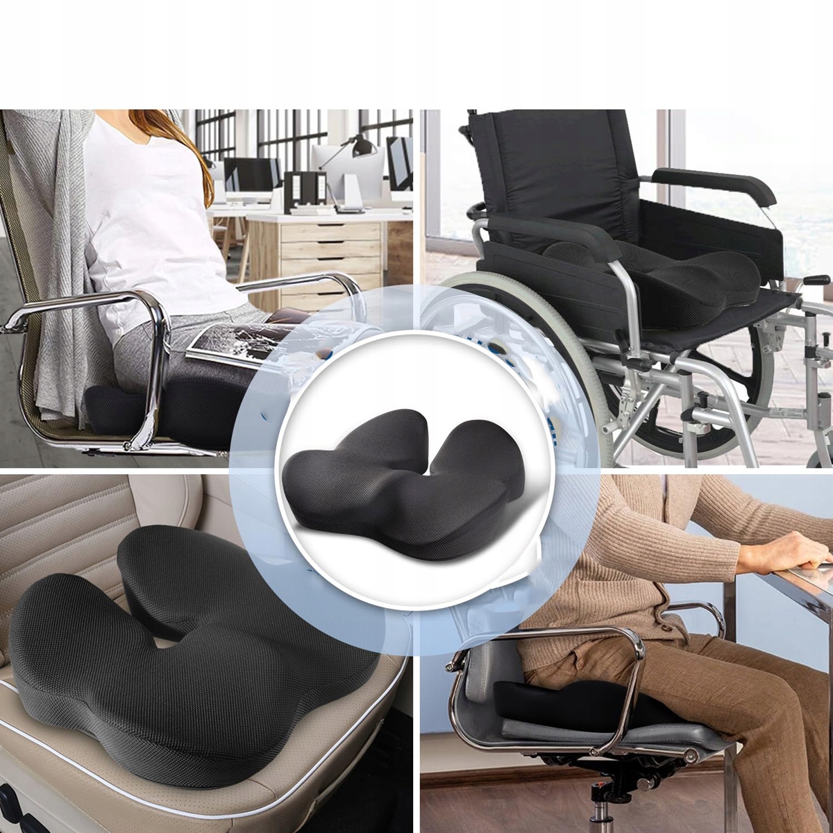 - Ергономічний U-подібна конструкція мінімізує біль у куприку та попереку, одночасно зводячи до мінімуму вплив сили тяжіння на хребет.