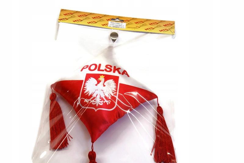 Предмет продажу біло-червона подушка POLSKA. Сублімаційний друк високого класу забезпечує відмінну якість виконання. Кріплення до скла за допомогою силіконової присоски.