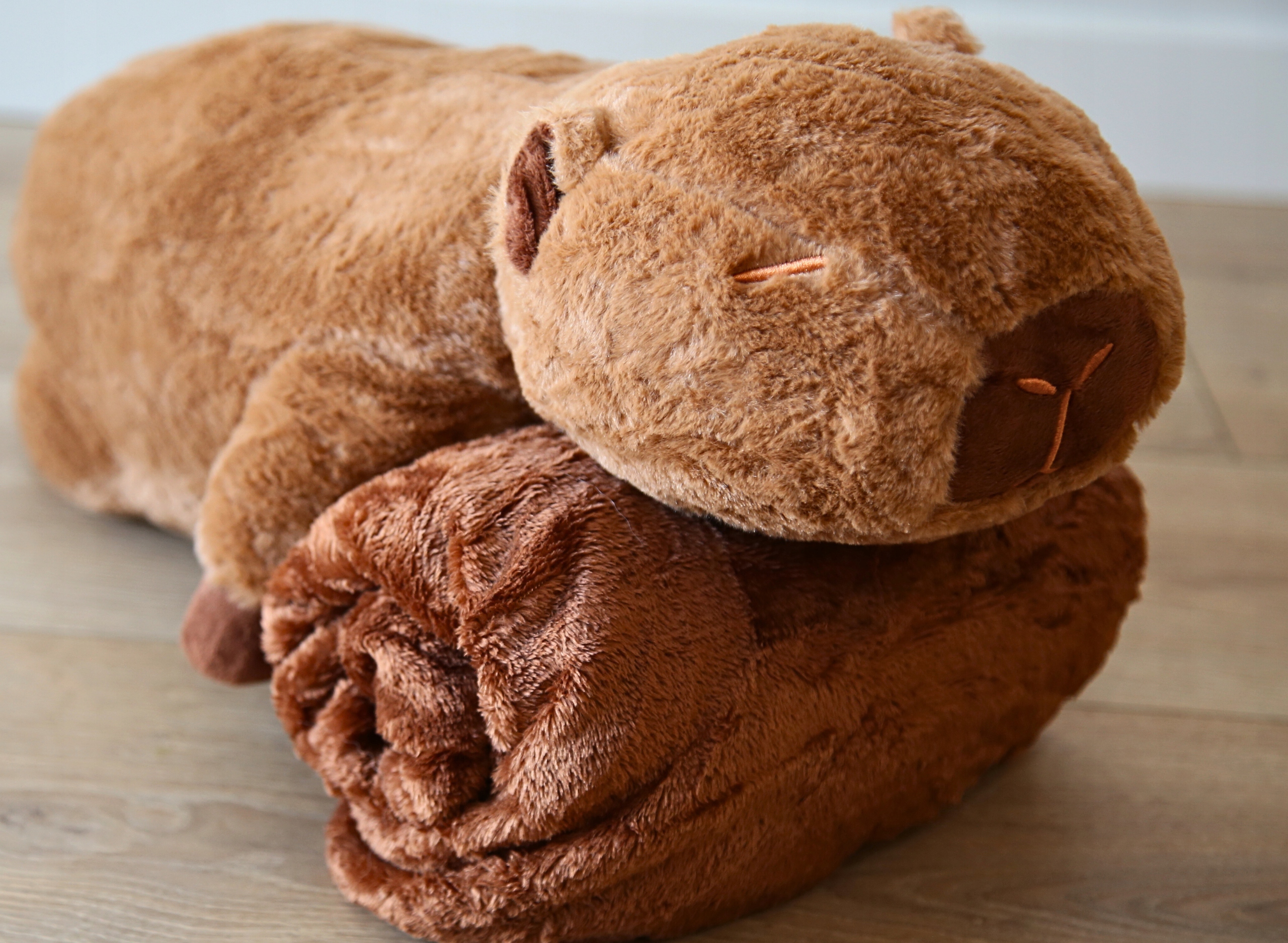 Незалежно від того, чи це сон, обійми чи гра, наш плюшевий ведмедик капібара з ковдрою 3 в 1 виправдає очікування кожного, хто його отримає.