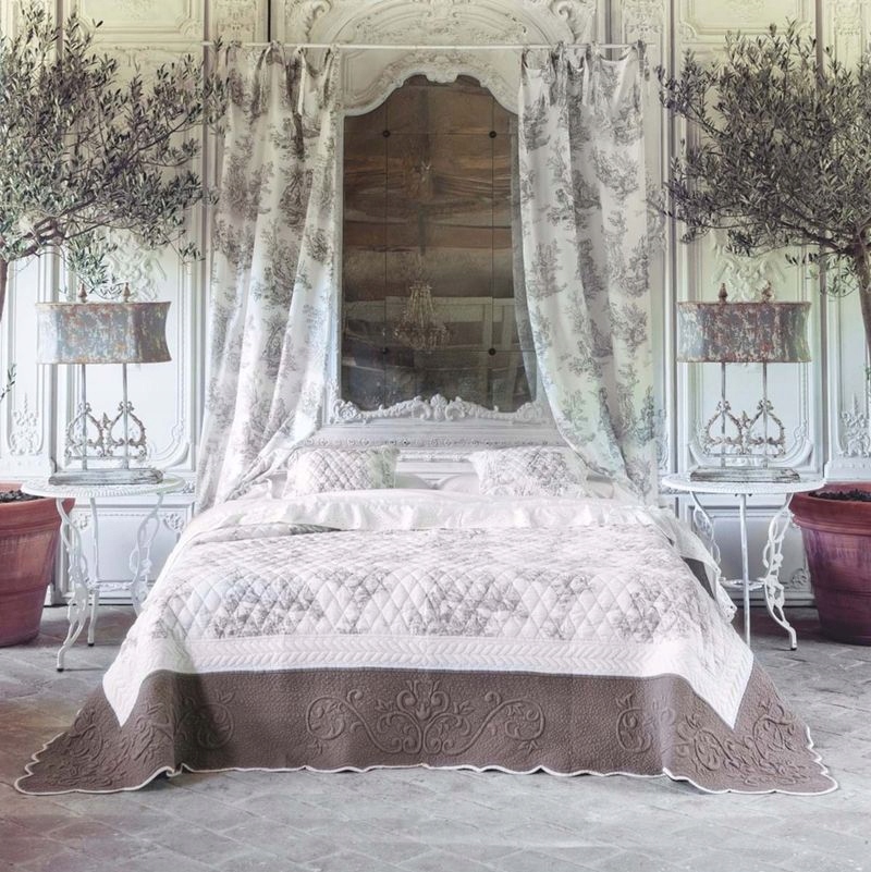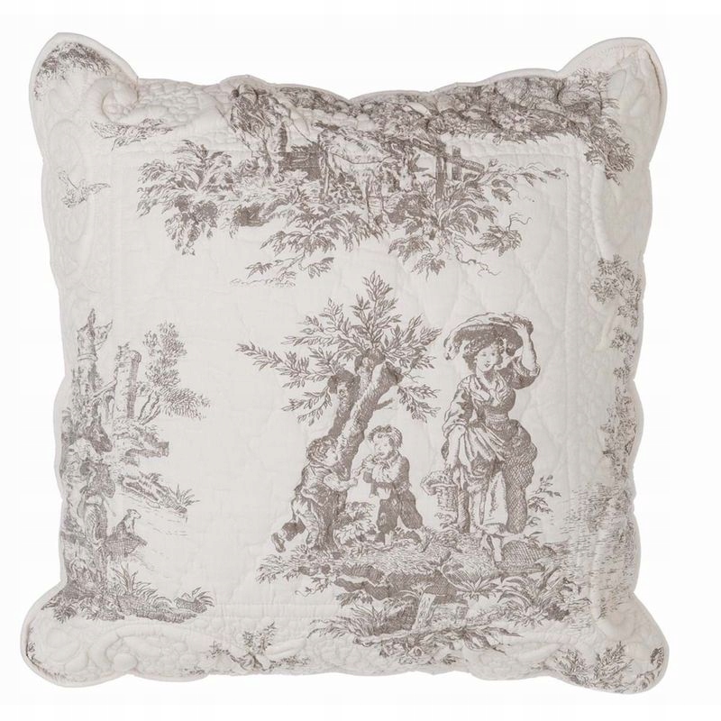 Романтична та елегантна подушка з бавовни. Прикрашена декоративним візерунком у французькому стилі. За складною назвою toile de jouy ховається відомий мотив