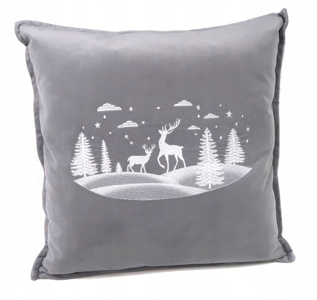 ПОДУШКА ВИШИТА РІЗДВЯНА, СІРА, РІЗДВЯНИЙ ОЛЕНЬ, 40х40см