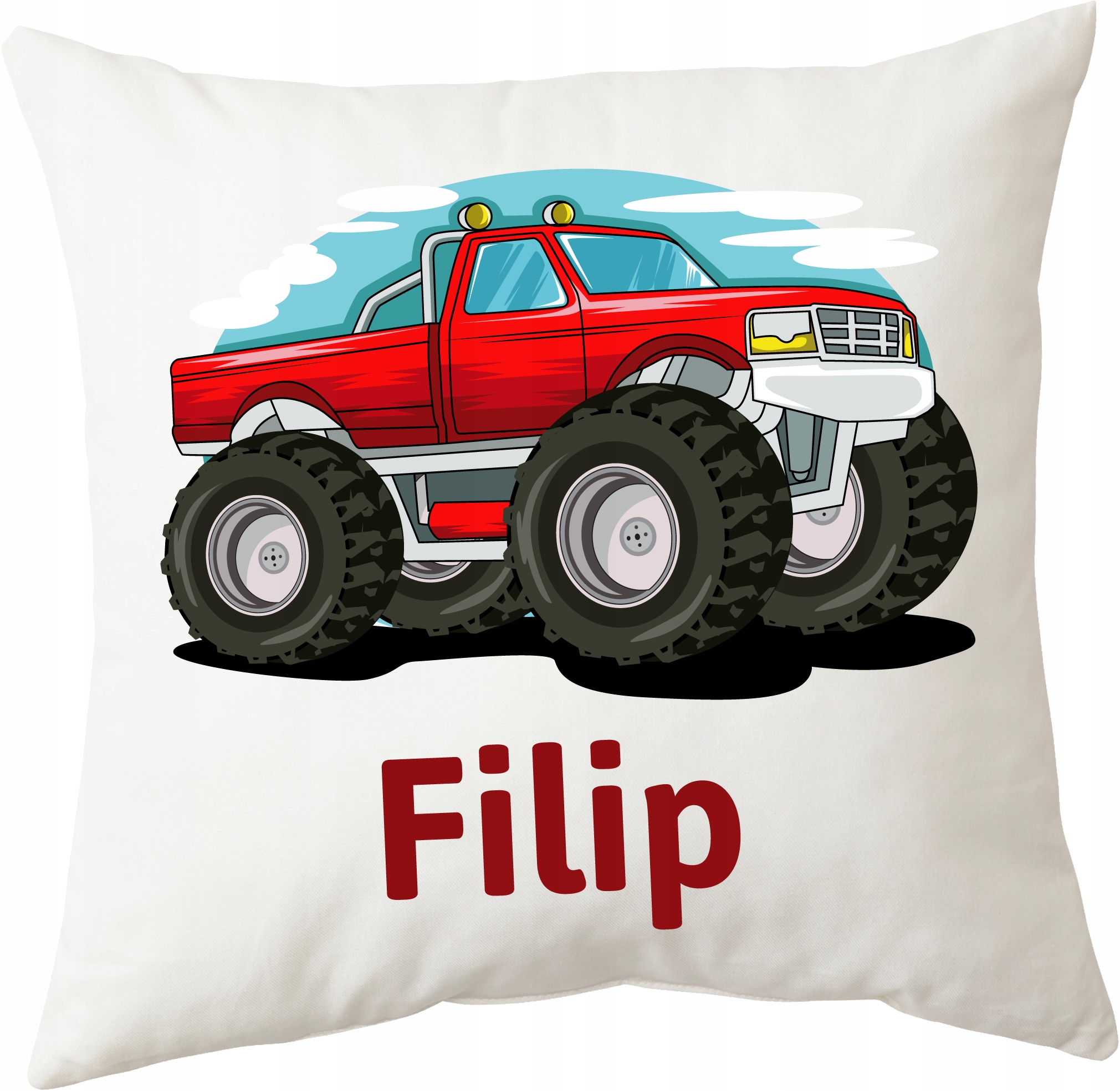 Подушка з мотивом MONSTER TRUCK 40x40 см + ІМ'Я (подушка включає наповнювач)