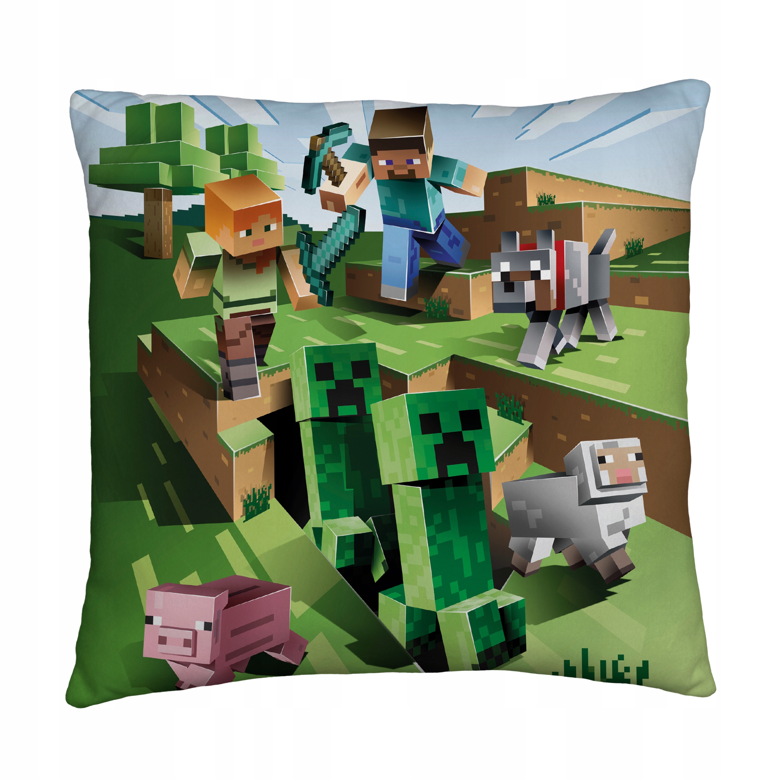 Оригінальна подвійна подушка з добре відомої комп'ютерної гри Minecraft, виготовлена з м'якої та приємної до сенсорної тканини. Відбитки з особливим обережністю зроблені, саме тому вони тривалий час зберігають свої естетичні цінності. Сучасна і легка начинка подушки. Тканина, виготовлена з тонких волокон, які легко адаптуються до форми голови. Ви можете мити в пральній машині при 40 ° C.