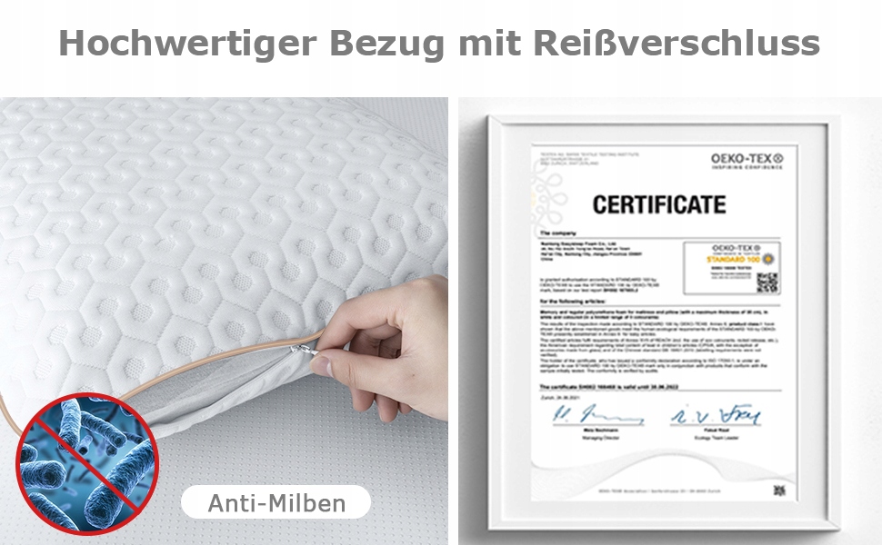 Наша подушка з гелевої піни з ефектом пам’яті має найвищий сертифікат Öko-Tex Standard 100. Без шкідливих речовин і запаху. Відкривши пакет, залиште його на 24 години, щоб він повністю розширився.