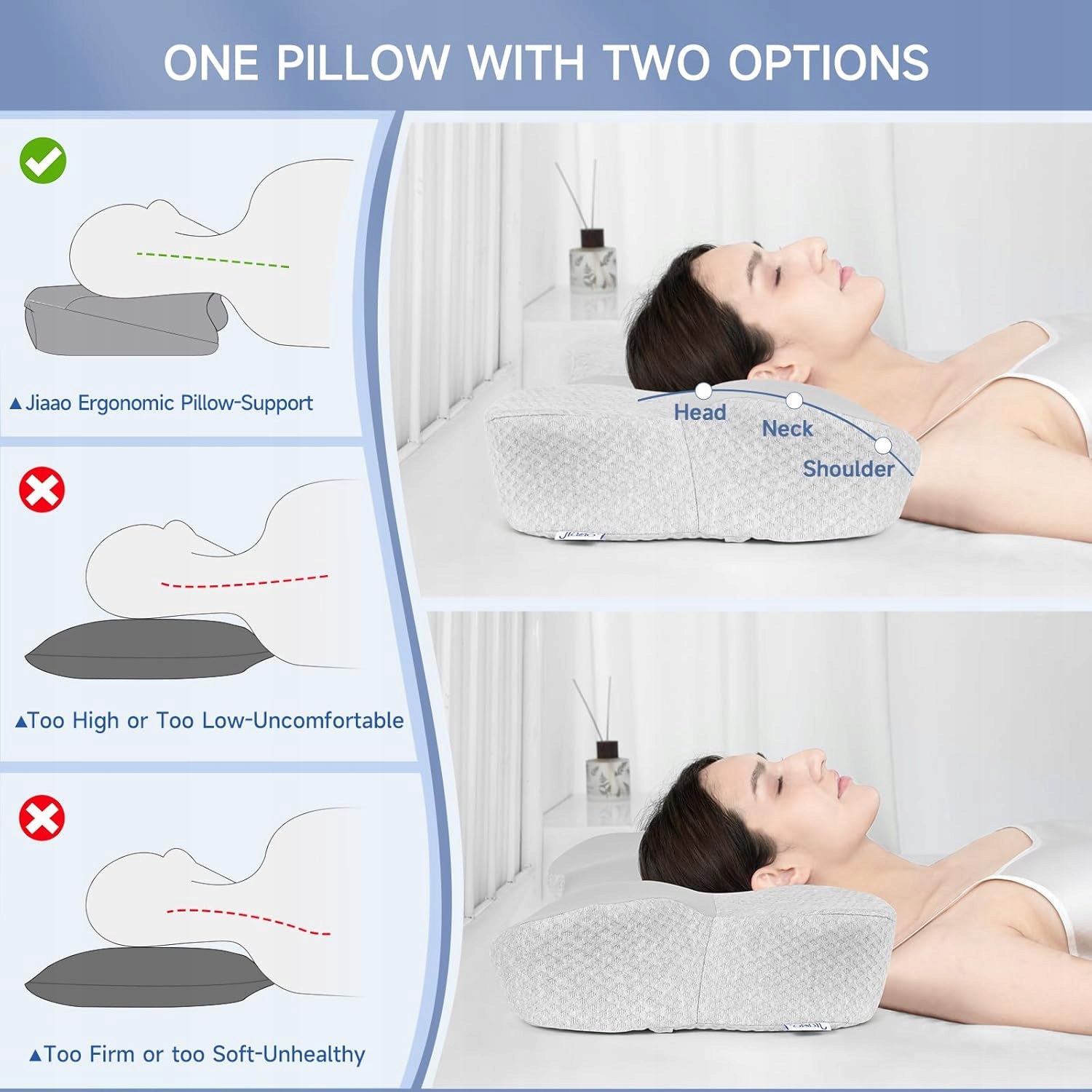 Шийна подушка Jiaao з повітряним і дихаючим чохлом, подушка для знеболювання плечей і шиї, ергономічна подушка для підтримки шиї, подушка з піни з ефектом пам’яті.