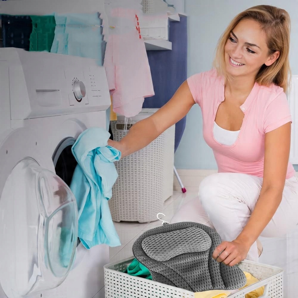 Просто періть у машині з нейтральним миючим засобом. Вбудовані гачки для легкого підвішування забезпечують швидке висихання на повітрі. Більше не потрібно чекати, поки ваша подушка буде готова до наступного купання. Наші м’які подушки для ванни зберігають свою якість і комфорт протягом тривалого часу, дозволяючи вам насолоджуватися чистим і гігієнічним середовищем купання.