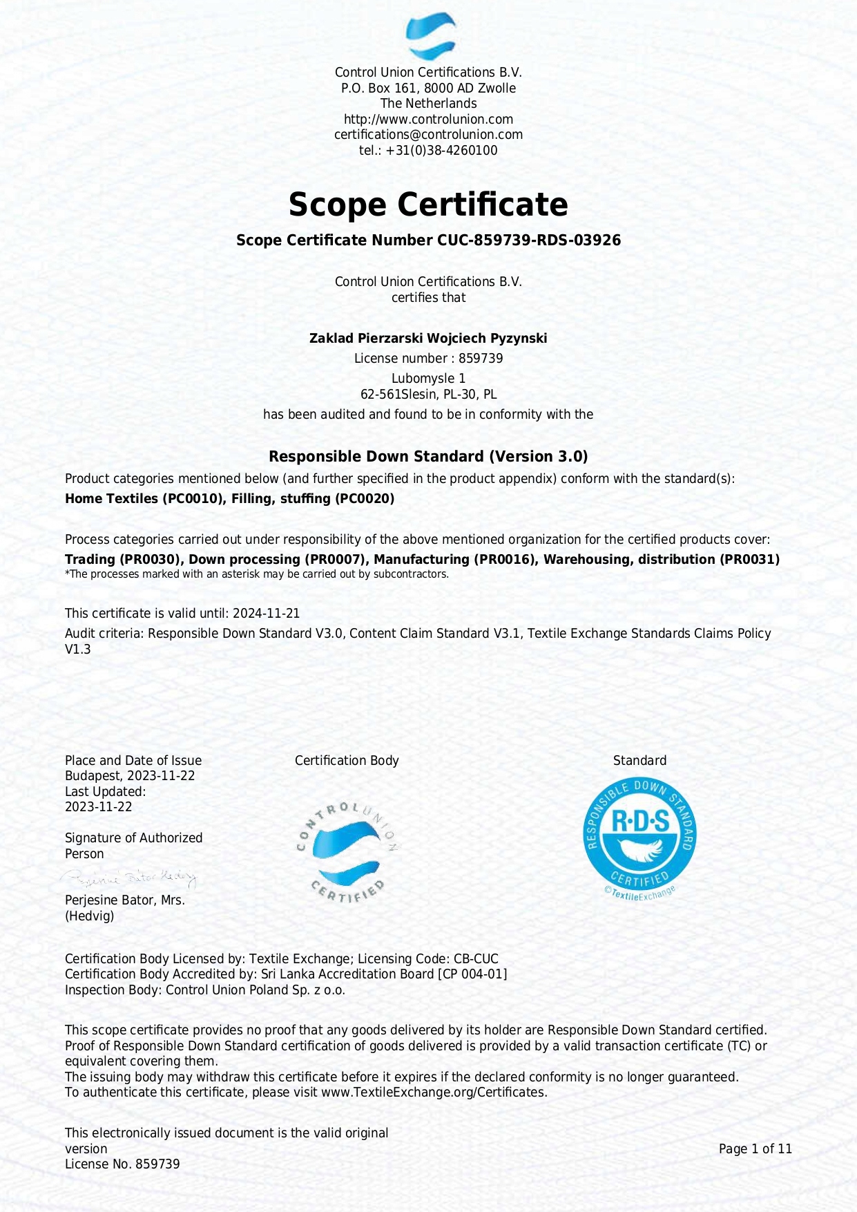 Наша фабрика є однією з небагатьох у Польщі, яка має пір’я та пух, сертифіковані RDS