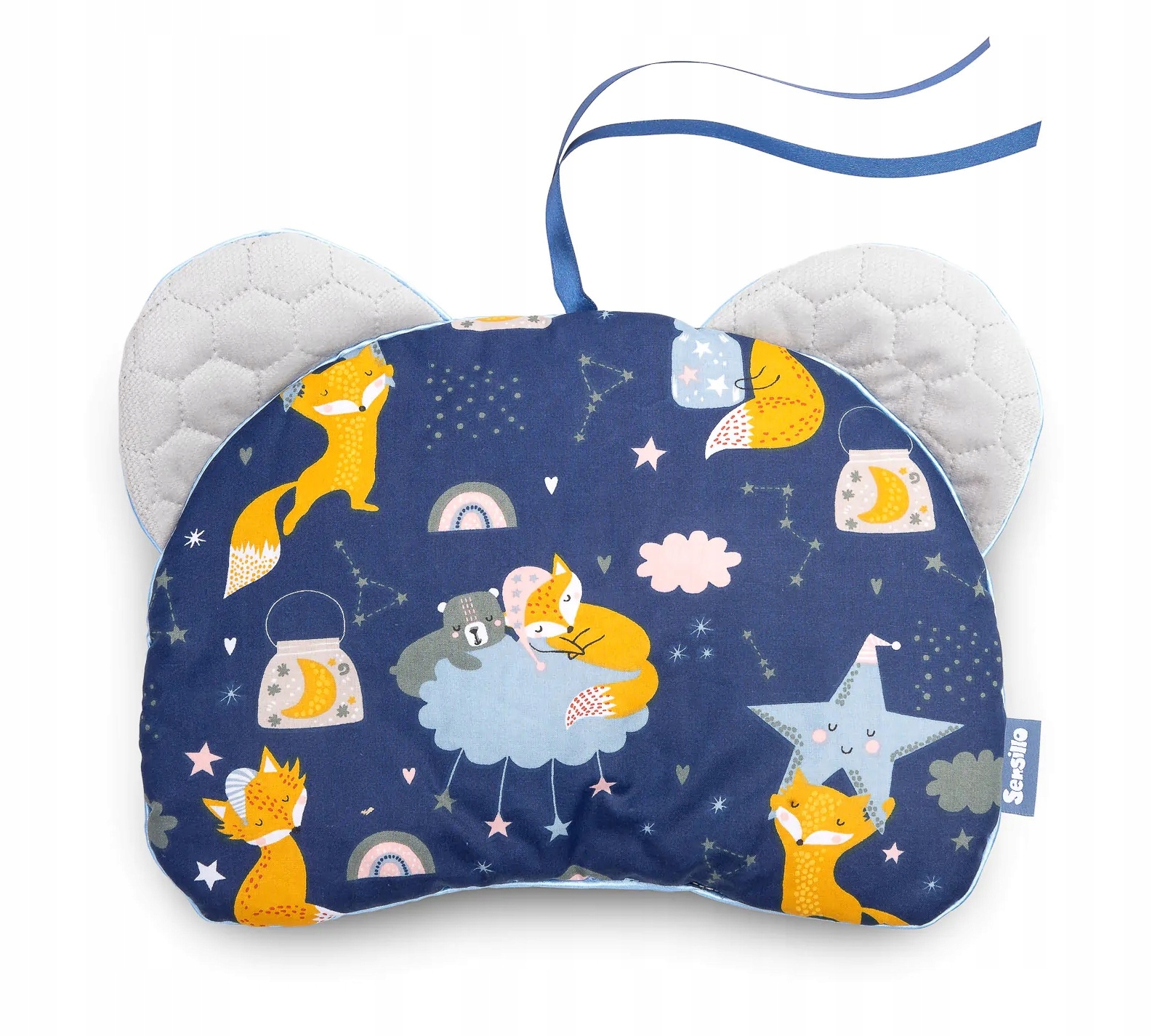 Подушка для коляски BEAR ідеально підходить з перших місяців життя як м'яка подушка для голови вдома або в подорожі. Підходить як для ліжечка, так і для коляски (можна прикріпити на вкладиш з цієї ж колекції). Подушка двостороння - з одного боку шар 100% бавовни, з іншого боку шар м'якого оксамиту. Подушка має вшиті стрічки, які дозволяють з’єднати її з вкладишем коляски. При необхідності їх можна легко відрізати.