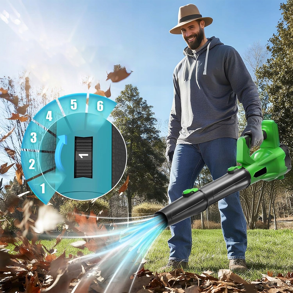 🔹 Безщітковий двигун + мідний двигун: Величезна потужність і довговічність! 6 налаштувань швидкості. Прибирає пил і листя як бульдозер. Без застрягань навіть при великому навантаженні. Термін служби набагато довший, ніж у звичайних двигунів.
