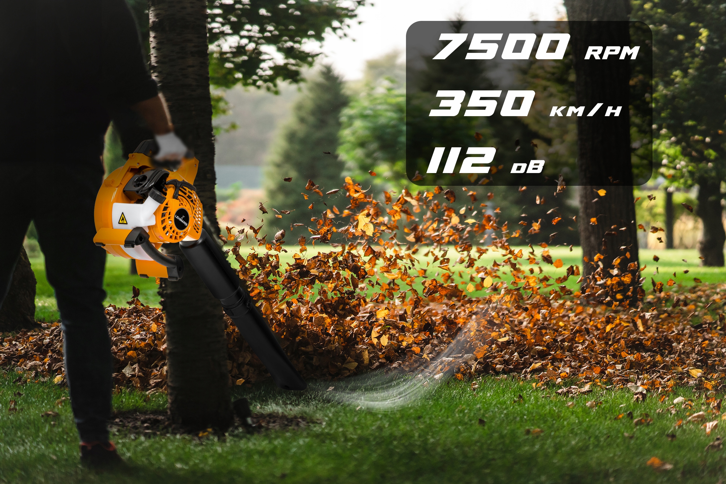 Бензиновий повітродув — ідеальне рішення для людей, які шукають довговічне та міцне рішення. Завдяки потужному двигуну з максимальною потужністю 3,5 к.с., пристрій здатний здувати листя з неймовірною швидкістю! Немає порівняння з електричними рішеннями. Ви можете прибрати свій сад і громадське місце у своїй компанії швидко і приємно! Але це ще не все, є також функція пилососа, а також можливість подрібнювати листя! Невелика вага 4 кг і ергономічна ручка дозволять вам працювати без зусиль. Швидко, легко та ефективно.