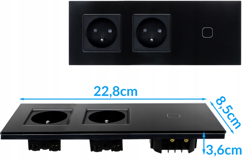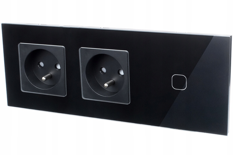 PODWÓJNE 2x GNIAZDKO CZARNE GNIAZDO ELEKTRYCZNE SZKLANE SZKŁO Z WŁĄCZNIKIEM