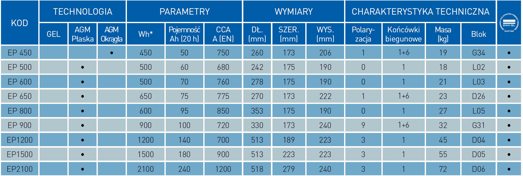 Ця батарея - побудована за технологією AGM (абсорбуючий скляний мат, плоска пластина або орбітальна) зі сплавом Ca/Ca та вентиляцією VRLA (регульований клапан), з ємність Вт·год* від 400 Вт·год до 900 Вт·год — ідеальний вибір для всіх транспортних засобів для відпочинку.