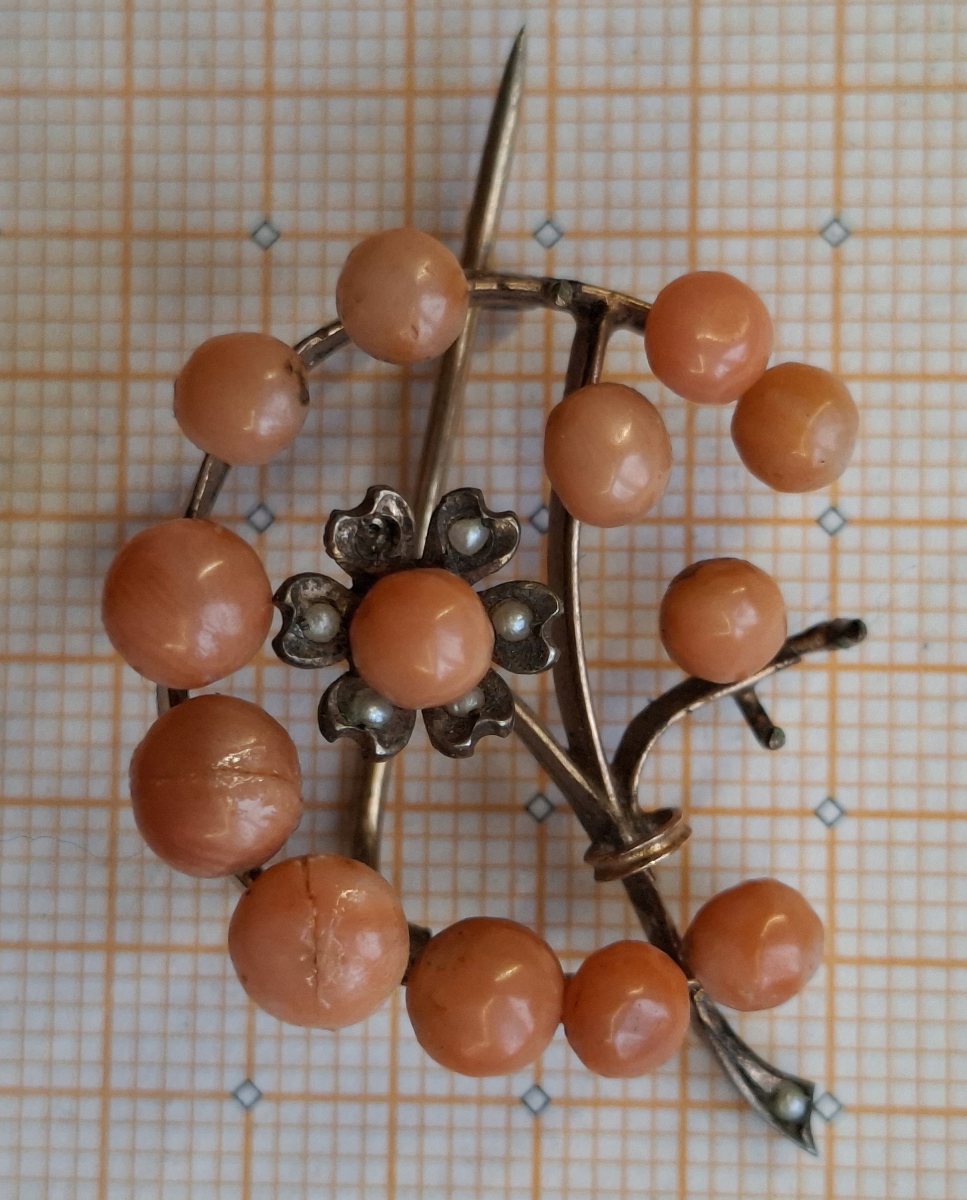 Подвійна брошка з коралами, 19 ст