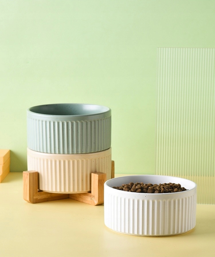★ 2 світло-помаранчеві керамічні миски на стійкій основі з натурального бамбукового дерева.