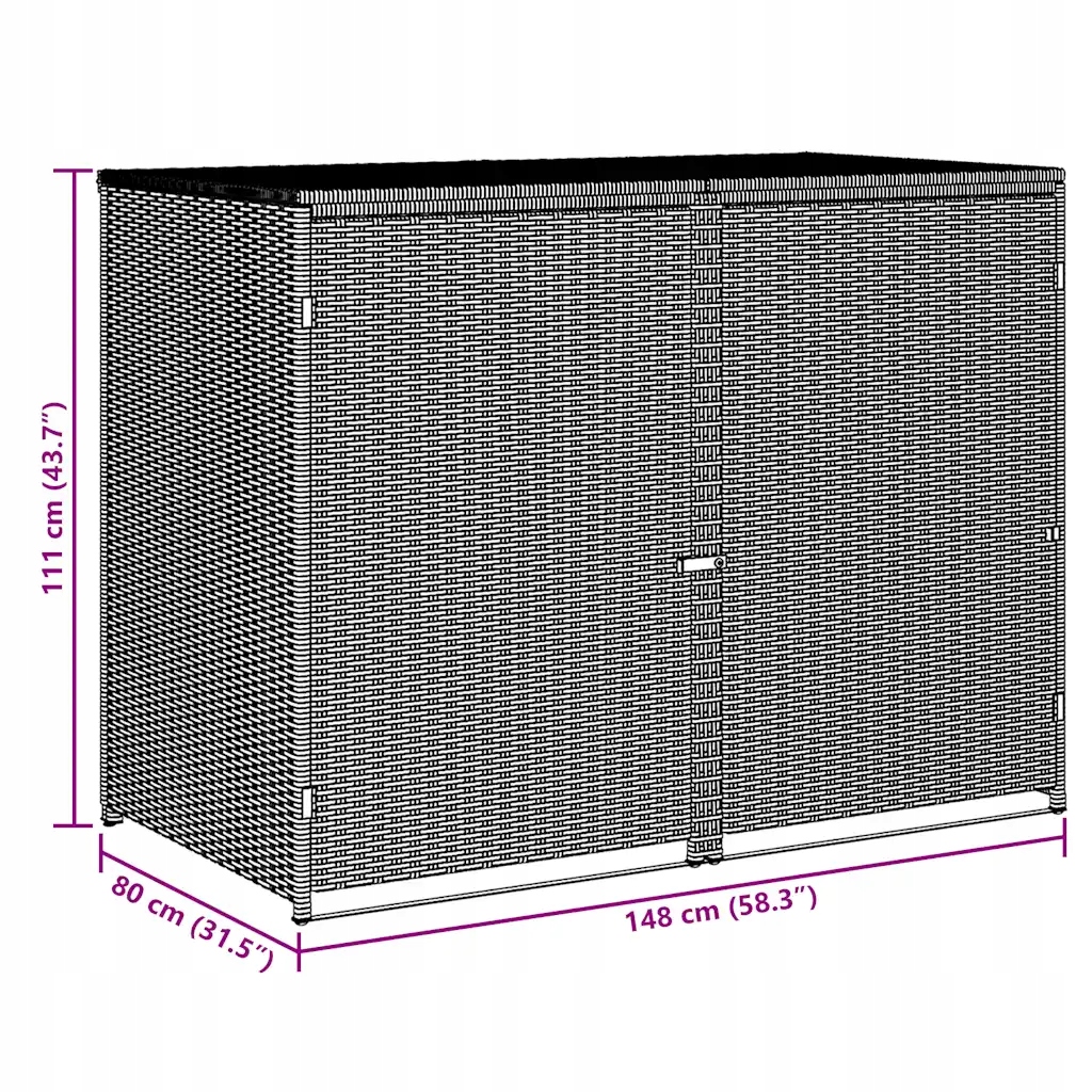 Подвійна кришка для Rattan PE, Black, 148x80x111cm