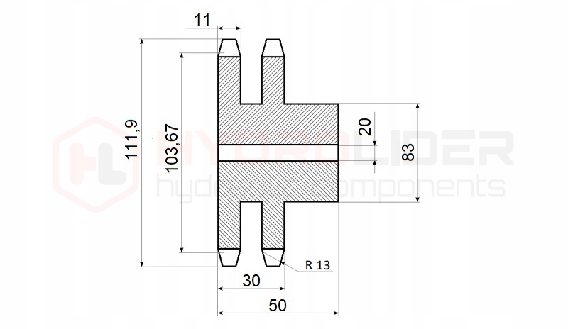Універсальна подвійна зірочка для передачі приводу в машини та пристрої з двома приводними ланцюгами Цей тип приводної передачі характеризується дуже високою міцністю та довговічністю.