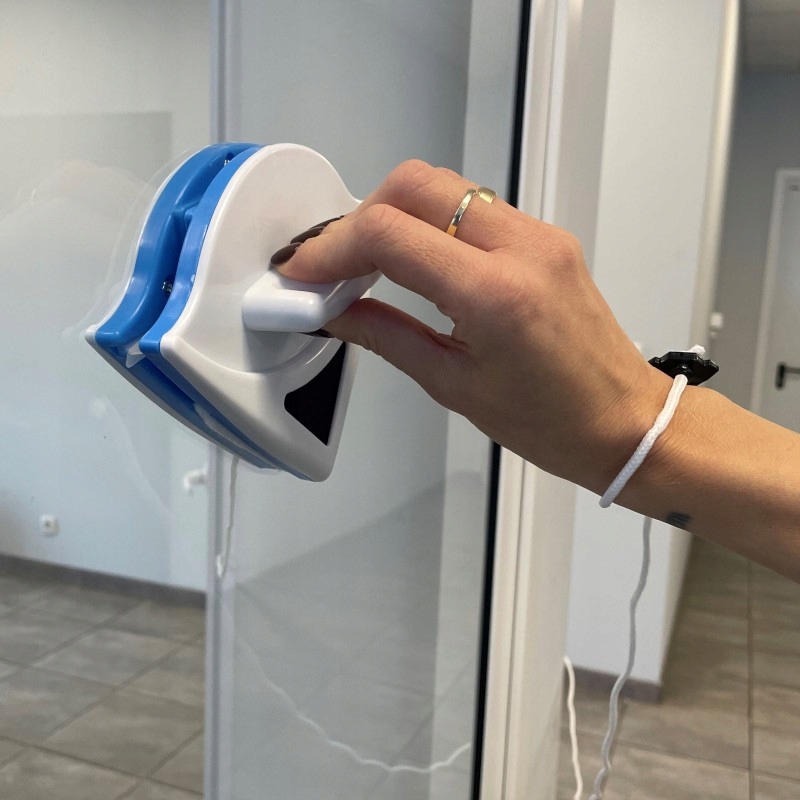 промивання промивання миття миття магнітного двостороннього вікна ідеально підходить для ефективного та швидкого очищення вікон та скла. Завдяки своєму дизайну він дозволяє одночасно чистити з двох сторін, що значно скорочує час та зусилля, необхідні для збереження чистоти. Він призначений для вікон з однією склянкою з товщиною від 3 до 8 мм. Його також можна використовувати для очищення інших плоских скляних поверхонь.