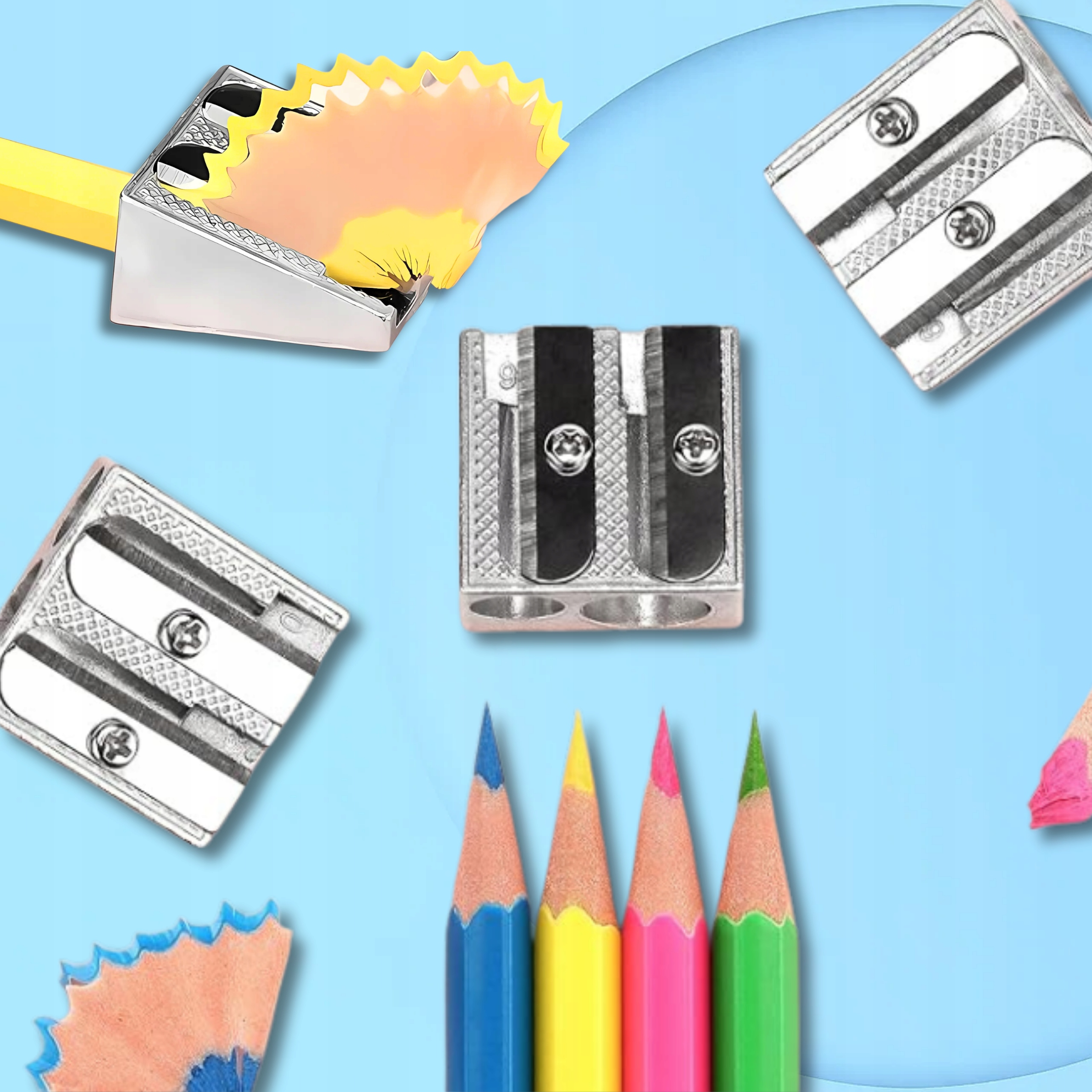 ✅ ПОДВІЙНІ ЛЕЗА - дозволяють заточувати кольорові олівці різного діаметру