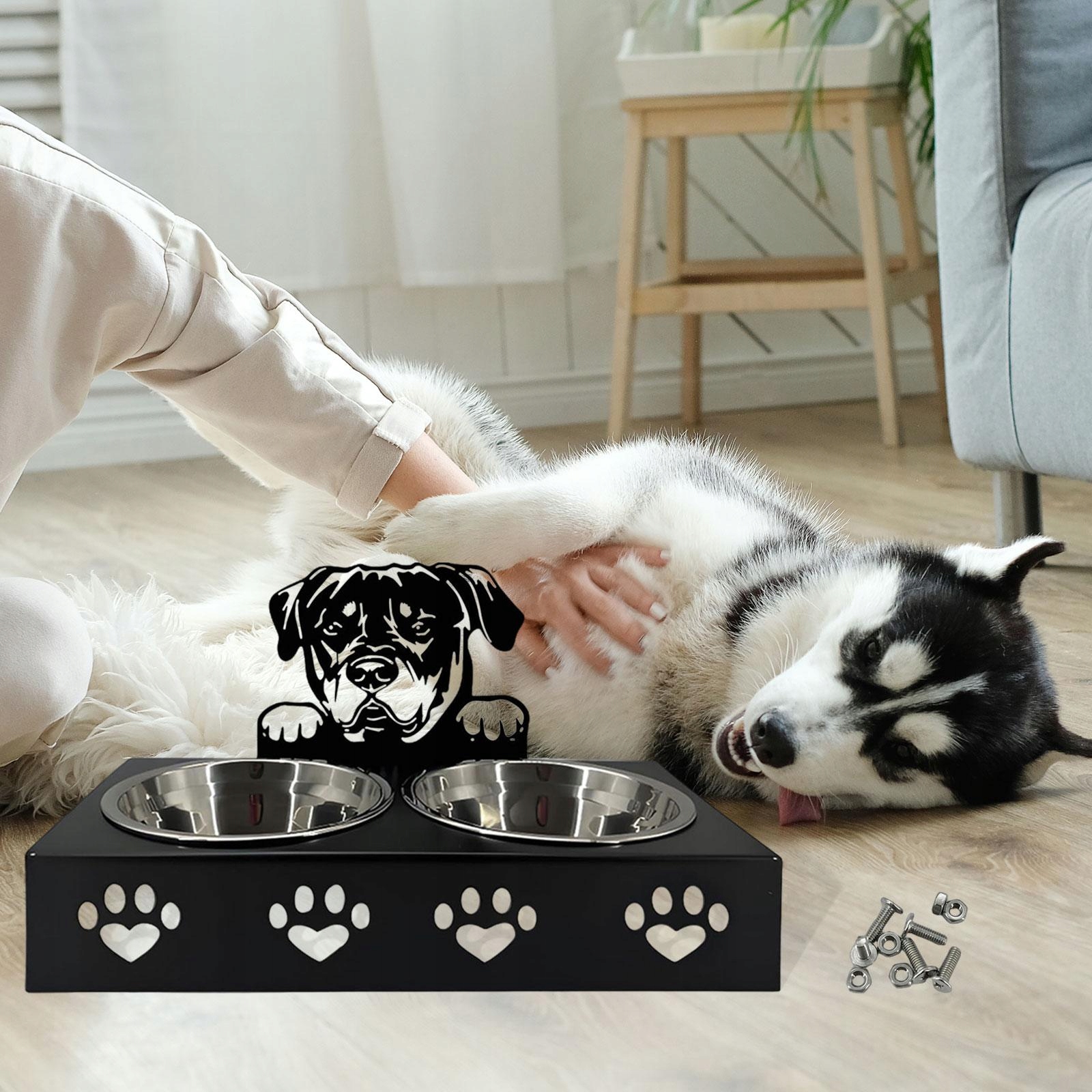 [Набір подвійних мисок]: наш продукт має запатентований дизайн. Набір з 2 мисок для собак великої місткості призначений для маленьких середніх собак і котів. Конструкція подвійної чаші зручна для подачі їжі та води одночасно. Також чудово підходить для багатьох сімей домашніх тварин