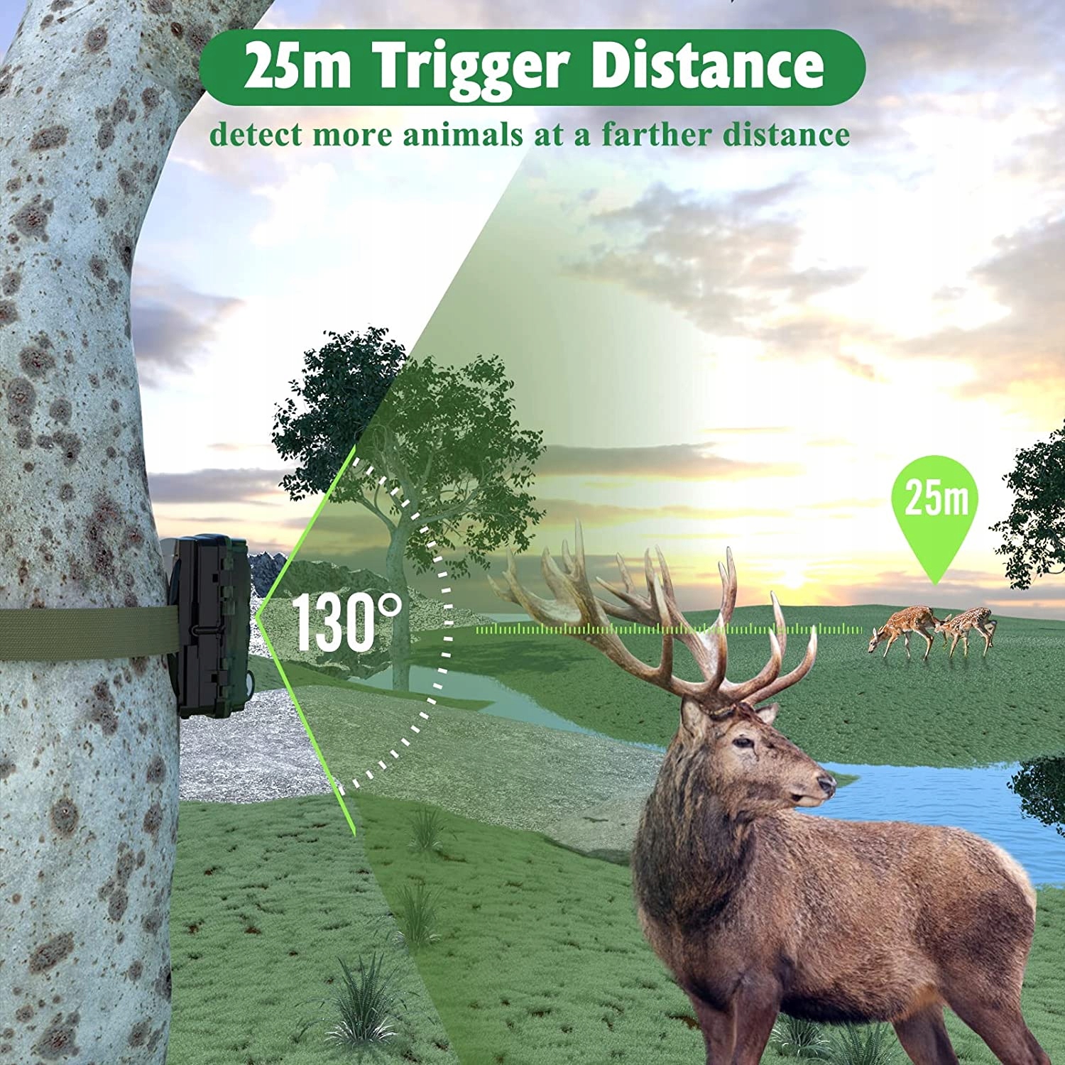Відео 4K HD і широкий кут огляду 130°: Денна роздільна здатність камери H8201 з високою роздільною здатністю забезпечує Відео 4K і фото 32MP у високій якості. За допомогою камери нічного бачення starlight ви можете записувати чорно-білі FUD відео високої роздільної здатності вночі. Ультраширококутний огляд 130 градусів дозволяє повністю контролювати світ диких тварин. миттєво перевести камеру в режим запису. Вражаюча швидкість спрацьовування центрального PIR-датчика зменшується до 0,1 с. Відстань спрацьовування 25 м, тож ви не пропустите жодного чудового моменту перед камерою