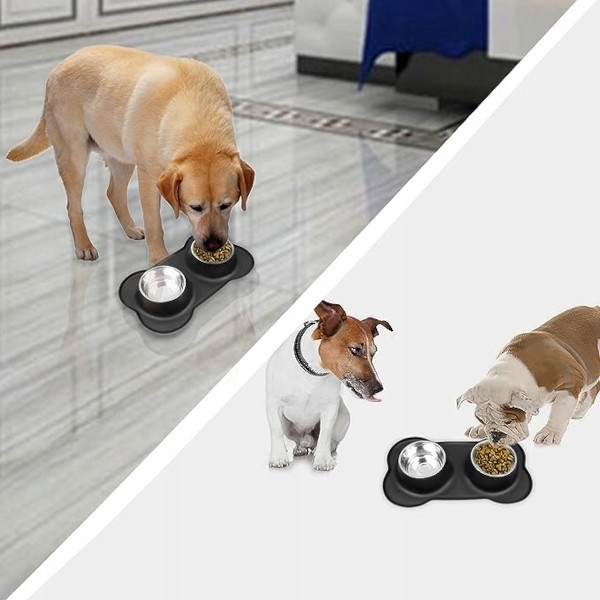 Подвійна миска для їжі та води для тварин. Чаші ставлять на спеціальну неслизьку основу. Продумана конструкція запобігає проливанню води та розливанню їжі. Акуратний зовнішній вигляд, завдяки якому миски впишуться в будь-яку кухню та зал.