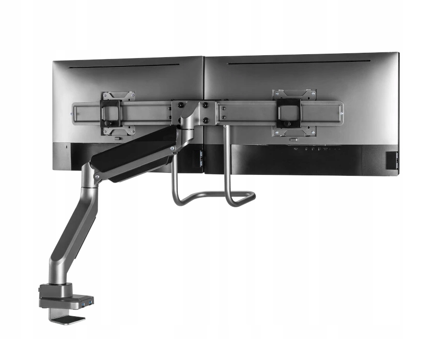ПОДВІЙНА ПІДСТАВКА ДО 9 КГ, СІРА, МАЄ ГАЗОВУ ПРУЖИНУ VESA, ПОРТИ USB