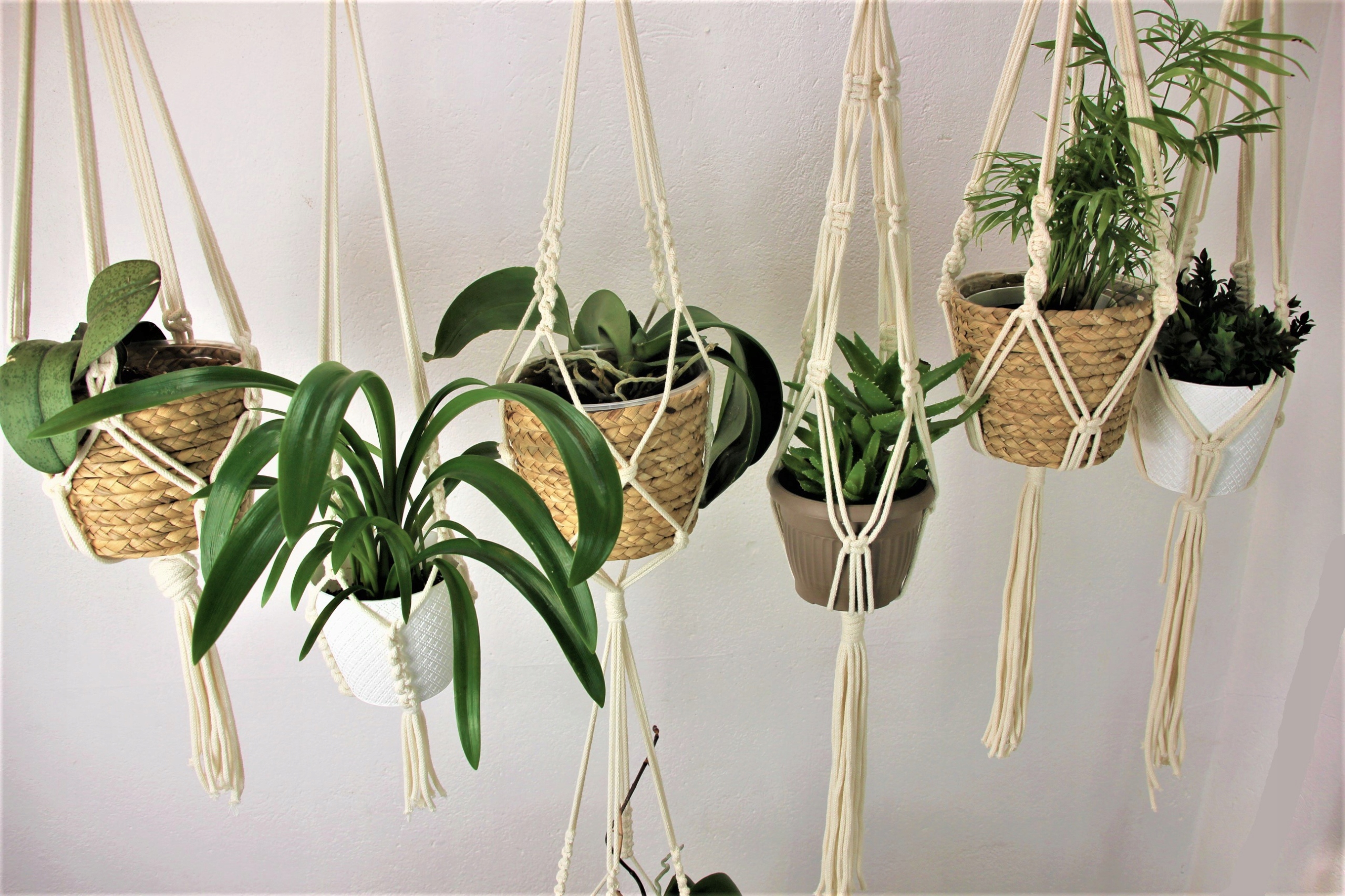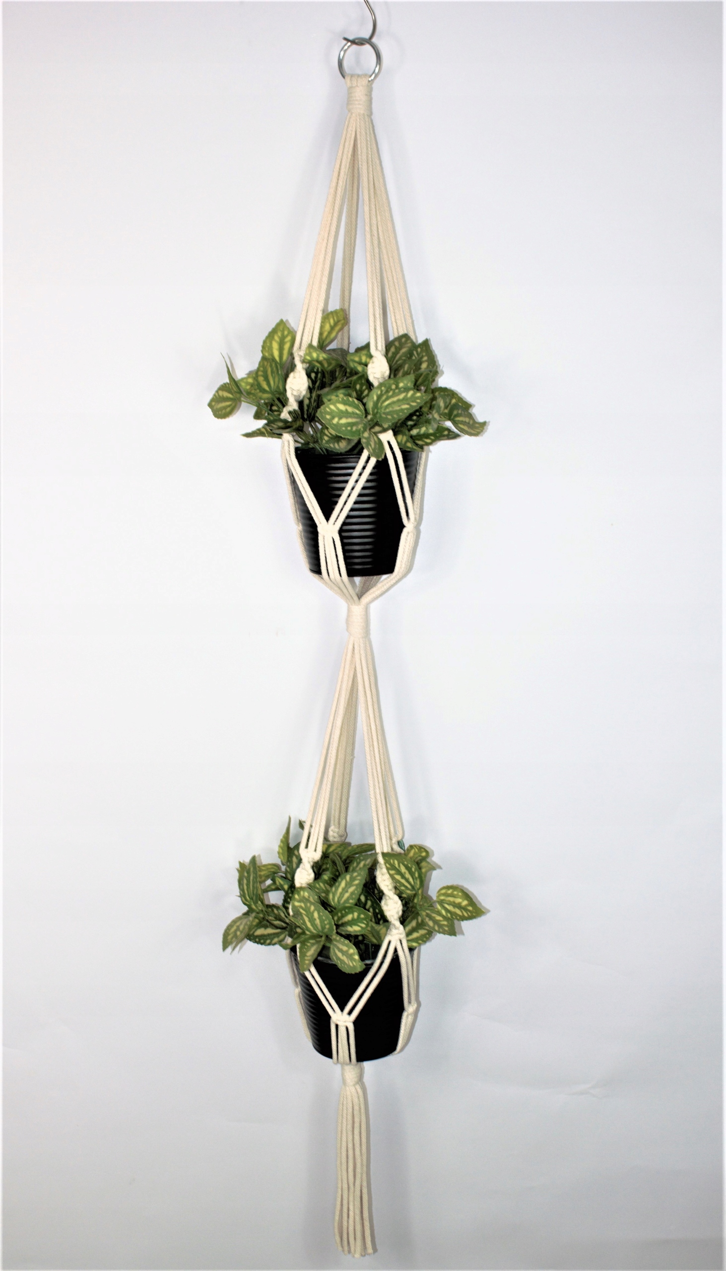 Подвійна підвісна клумба з мотузки. Макраме.