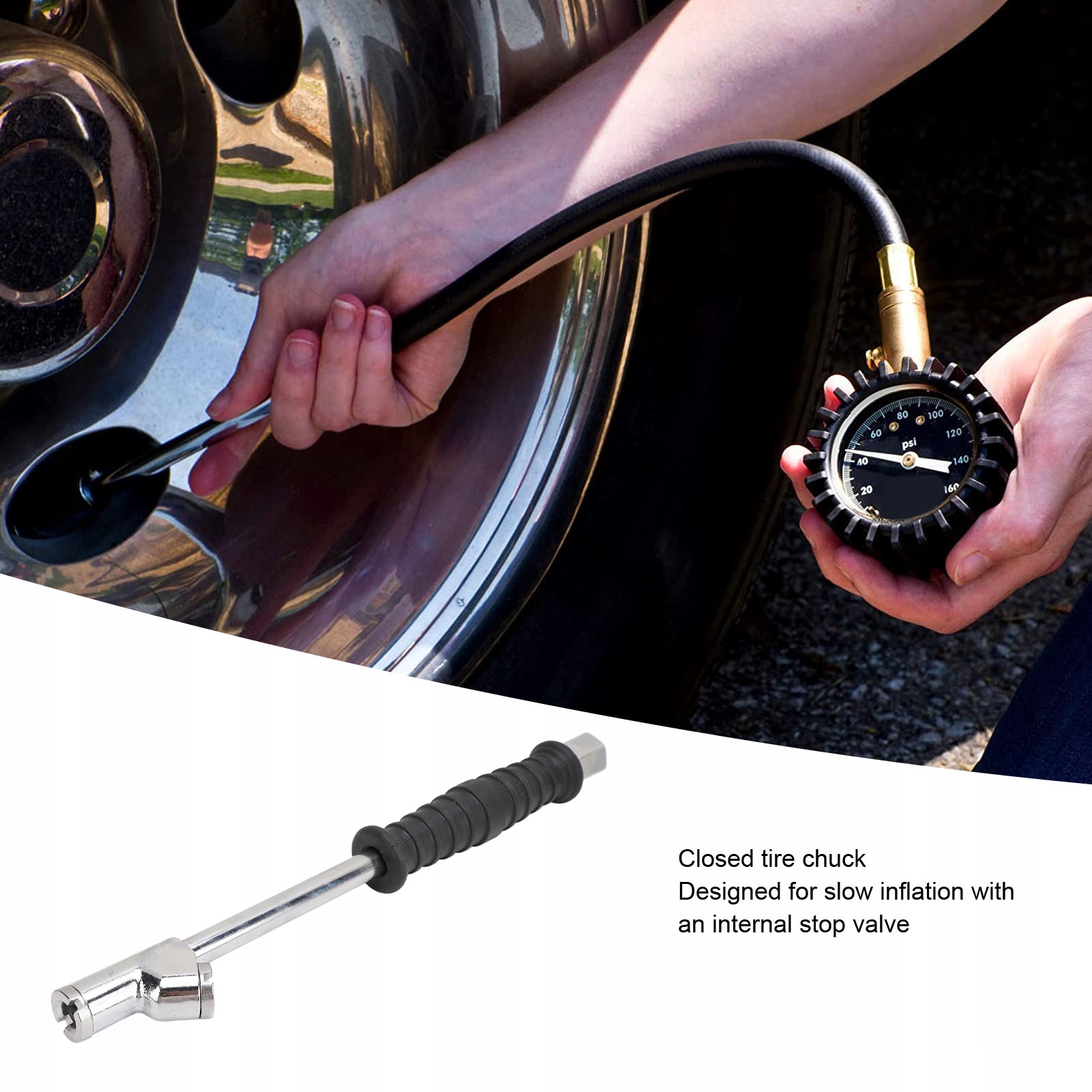 5. Багатофункціональність: пневматична ручка 2 в 1 з контролем тиску та функцією наповнення. Кріплення шини розроблено з ручкою, що вставляється, що усуває необхідність пригвинчувати кріплення до штока клапана. Щоб забезпечити гарне ущільнення, просто натисніть ручку на клапан.