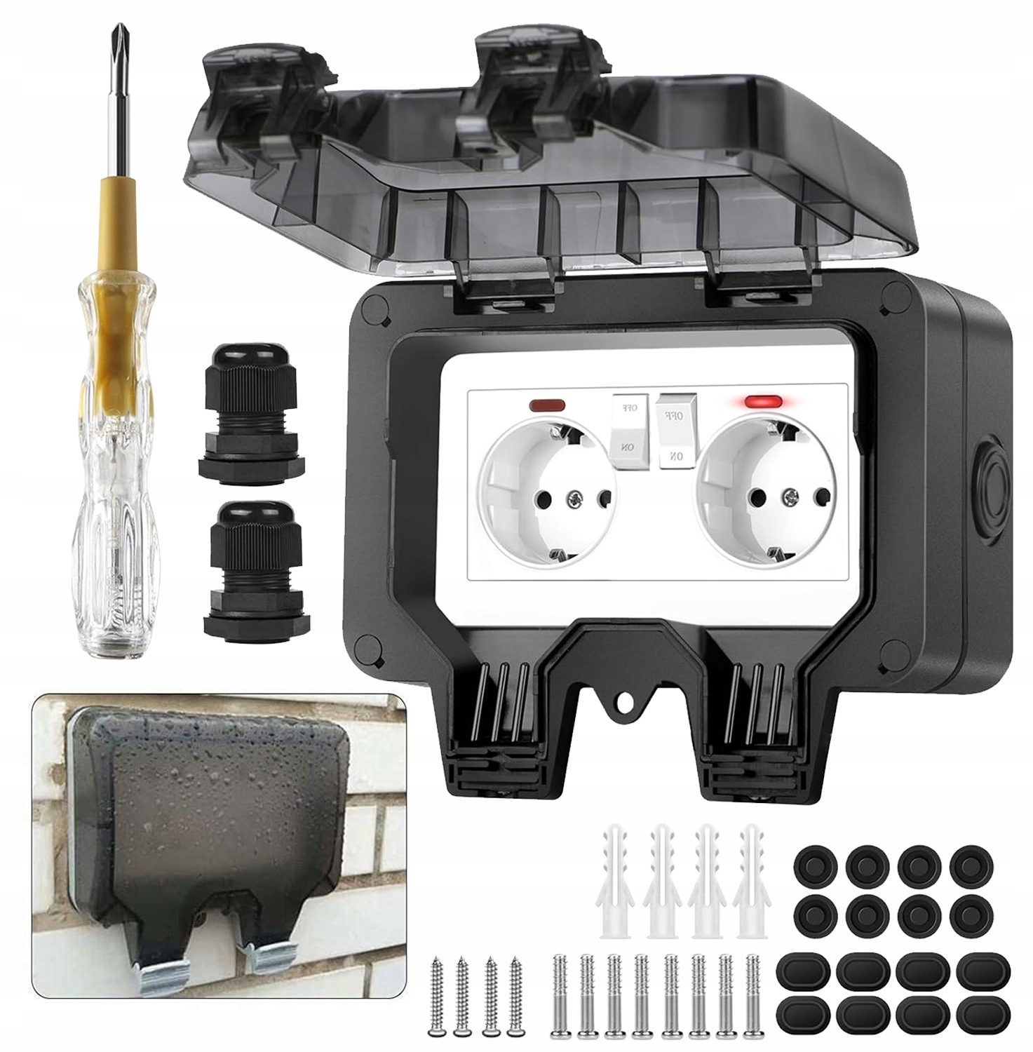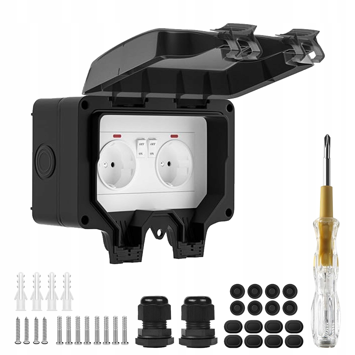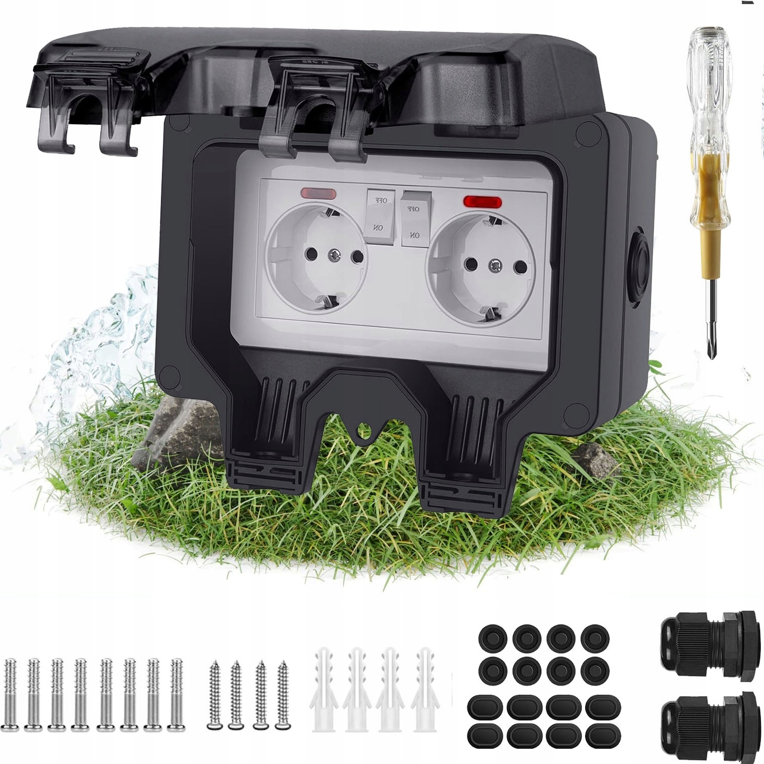 ПОДВІЙНА РОЗЕТКА IP66 САДОВА ЗОВНІШНЯ ВОДОСТІЙКОВА РОЗЕТКА 230В