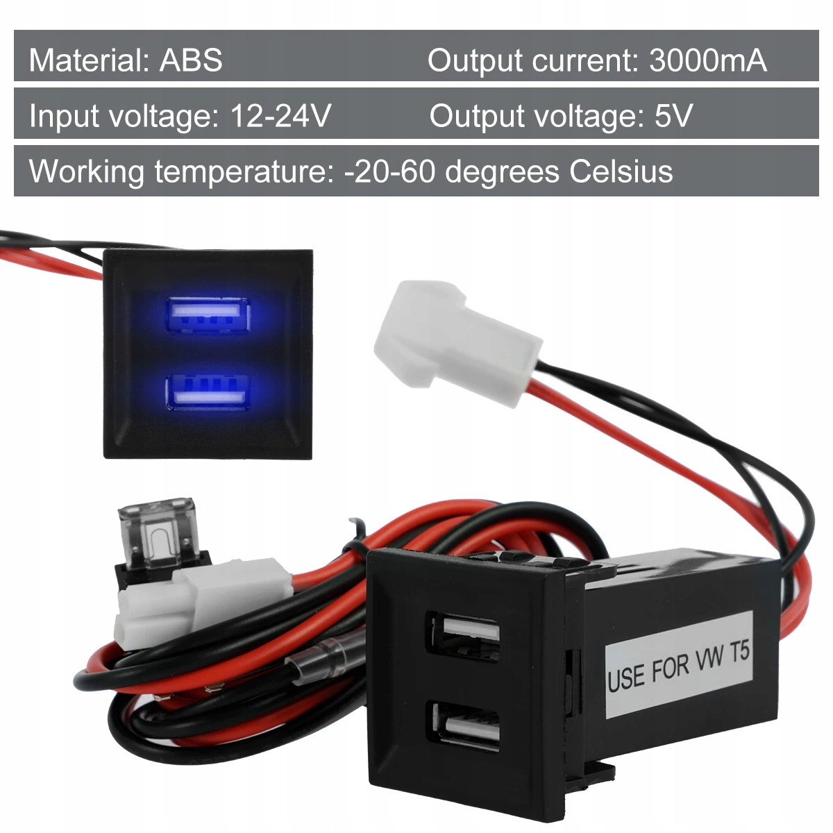 [сумісність] Ця подвійна розетка USB-зарядного пристрою для телефону сумісна з транспортером T5 2003-2009 і не сумісна з моделями T5.1 старше 2010 року. Перед покупкою. Матеріал ABS, який є постійним для використання. Він має два USB-порти та синє світло, завдяки якому його легко знайти в темряві. У машині легко встановити. Слід пам’ятати, що вам слід перевірити довжину та ширину кріпильних отворів, які мають відповідно 28,3 мм та 23,4 мм. Детальний опис: