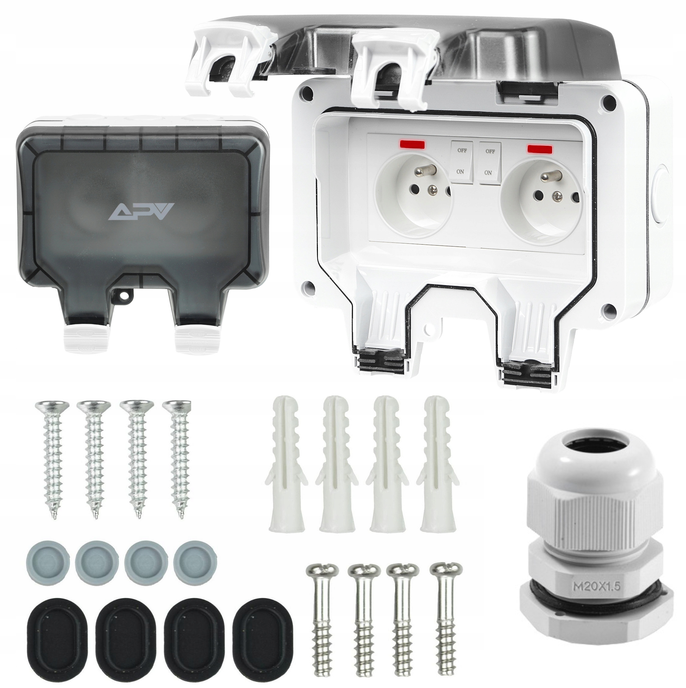 - ПРЕМІУМ ЯКІСТЬ - ПОЛЬСЬКИЙ БРЕНД - APV - Розетка виготовлена з високоякісного матеріалу ABS. Стійкий до ударів і погодних умов. Ущільнювач перешкоджає проникненню пилу та води.