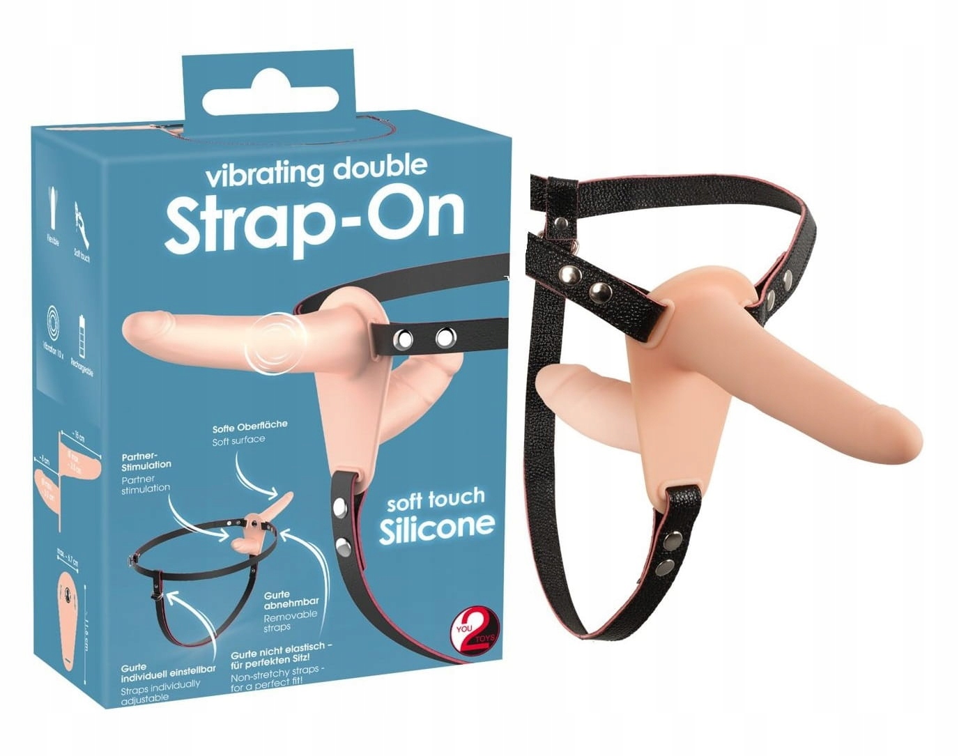 Подвійний вібруючий ремінець на регульованому ремені, який пропонує 10 різних типів вібрації та дозволяє різні способи проникнення та любовні ігри: наприклад, вагінальний секс, анальний секс, сольну гру або гру з партнером .