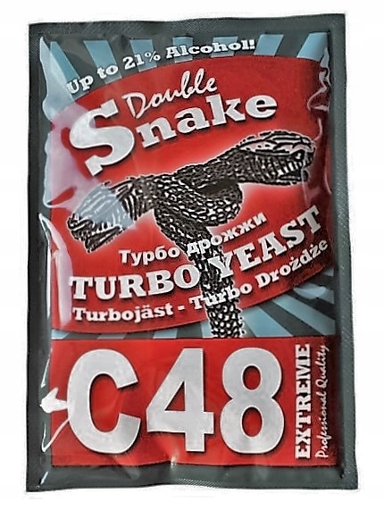 Дуже сильна і швидка дріжджа подвійна змія C48. Налаштування досягне до 21%. Готовий навіть через 2 дні. Дріжджі з турбо -спиртзаводом з високою якістю кінцевого продукту.