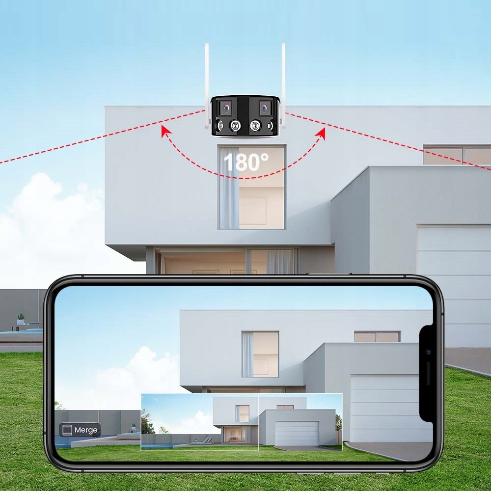 Панорамне зображення дозволить вам легко побачити все, що відбувається всередині або поза вашим будинком. Завдяки використанню двох камер та підключення зображення в одне ціле кут зору становить до 180 градусів.