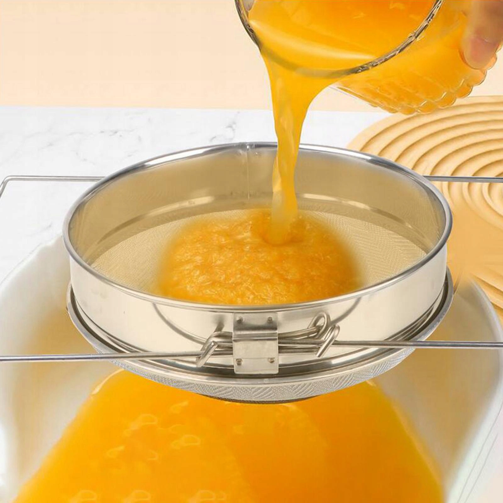 [Маленькі очі]: сітка з нержавіючої сталі з двома шарами забезпечує точну систему фільтрації, ідеально підходить для фільтрації меду. Це гарантує, що ваш мед не буде містити домішок.