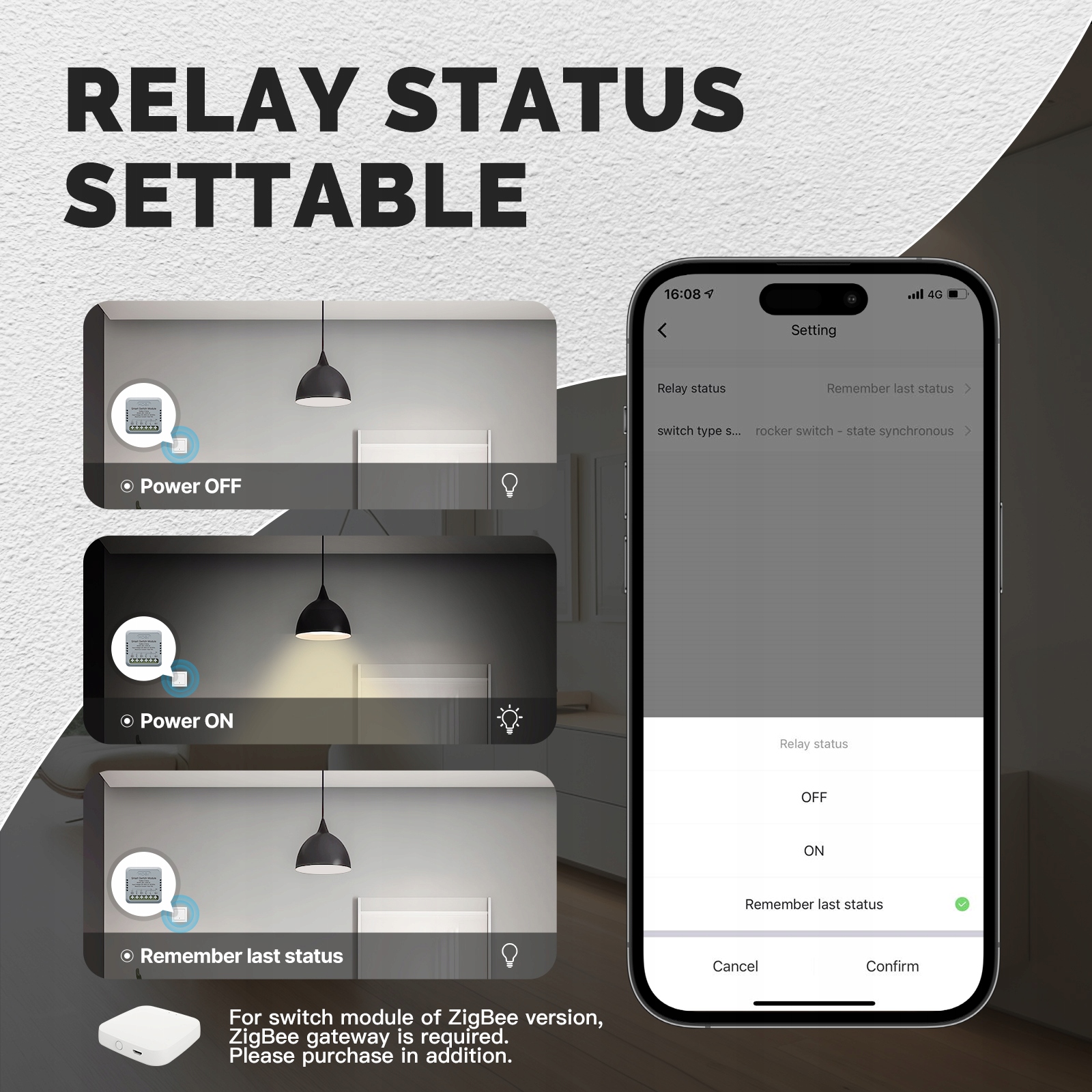 Ви можете вирішити, чи вмикатиметься пристрій автоматично під час подачі живлення чи збереже попередній стан перемикача. Ідеально підходить для ваших звичок і потреб.