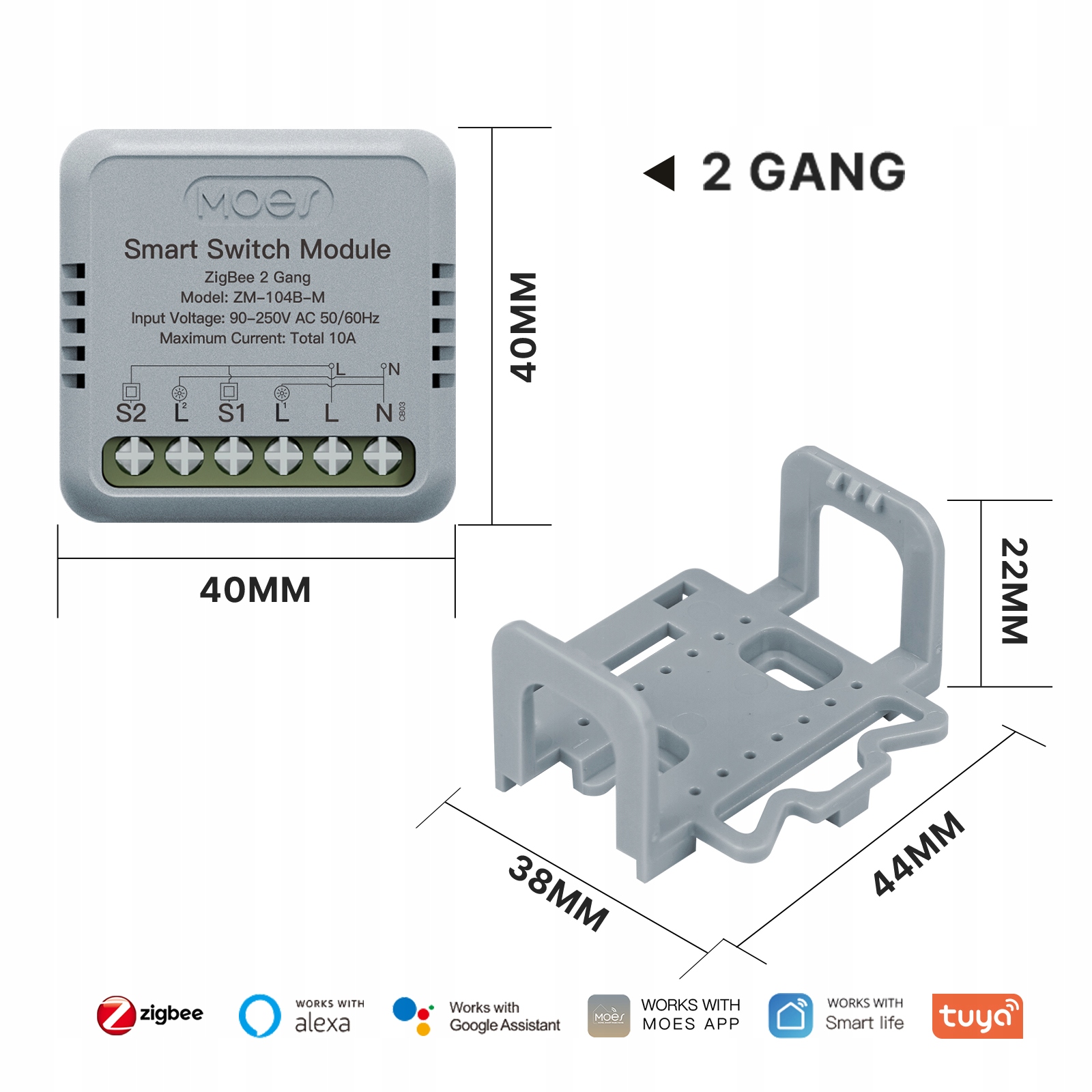 Подвійне реле Mini Zigbee Moes ZM-104B-M TUYA – Інтелектуальне керування вашим домом