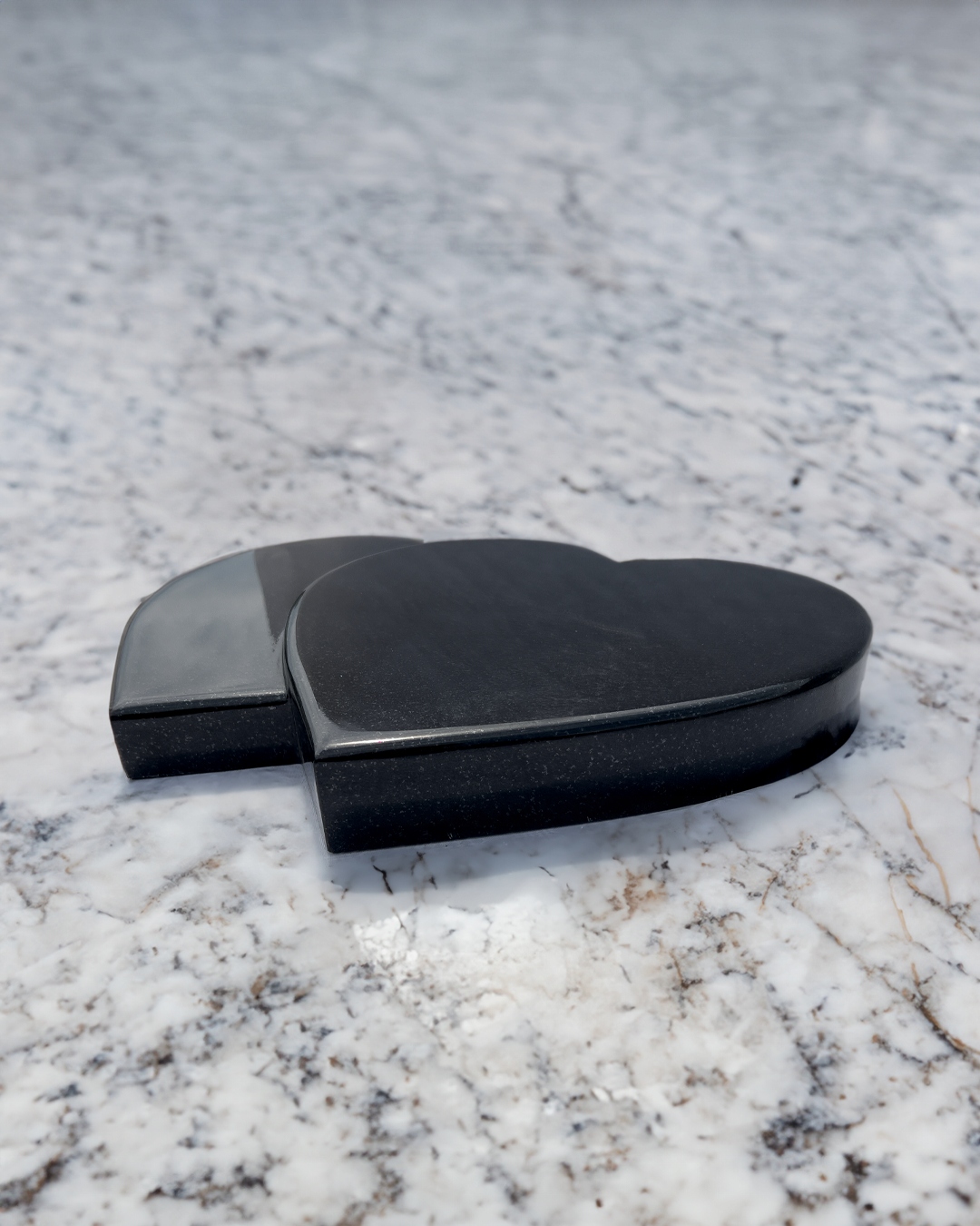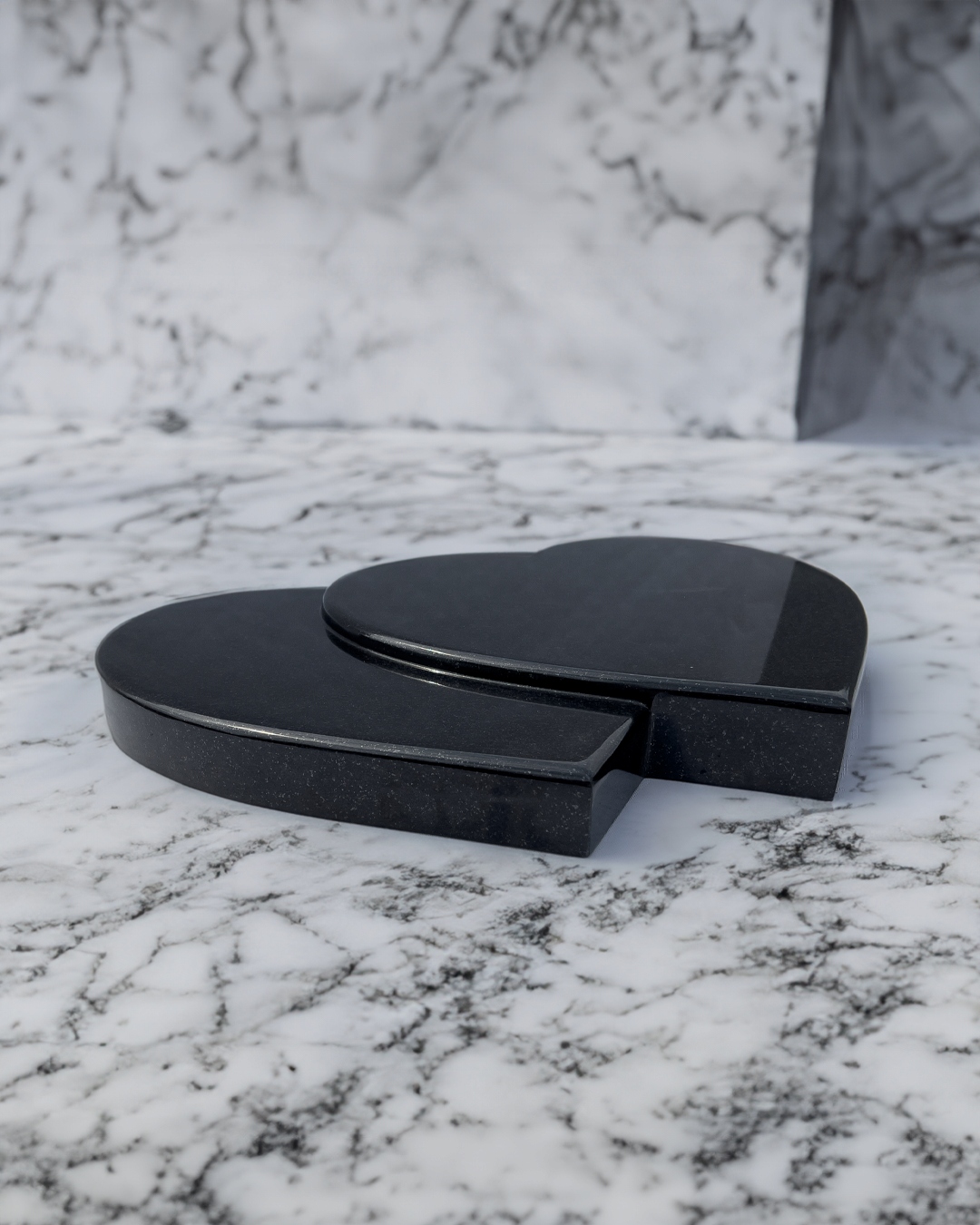 Наше подвійне серце виготовлено з високоякісного граніту, який відрізняється надзвичайною міцністю та елегантним зовнішнім виглядом. Чорний колір надає йому серйозності та вічного характеру.